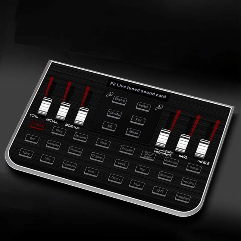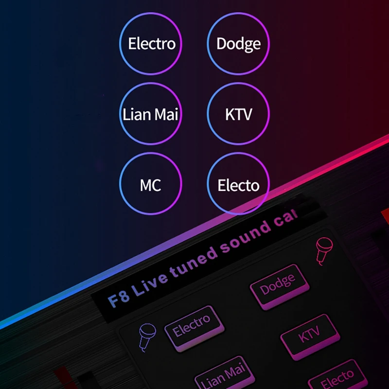 Регулировка размера реверберации, регулировка громкости микрофона, высокая регулировка басов, управление громкостью записи, управление громкостью музыки, контроль громкости (функция наушников).