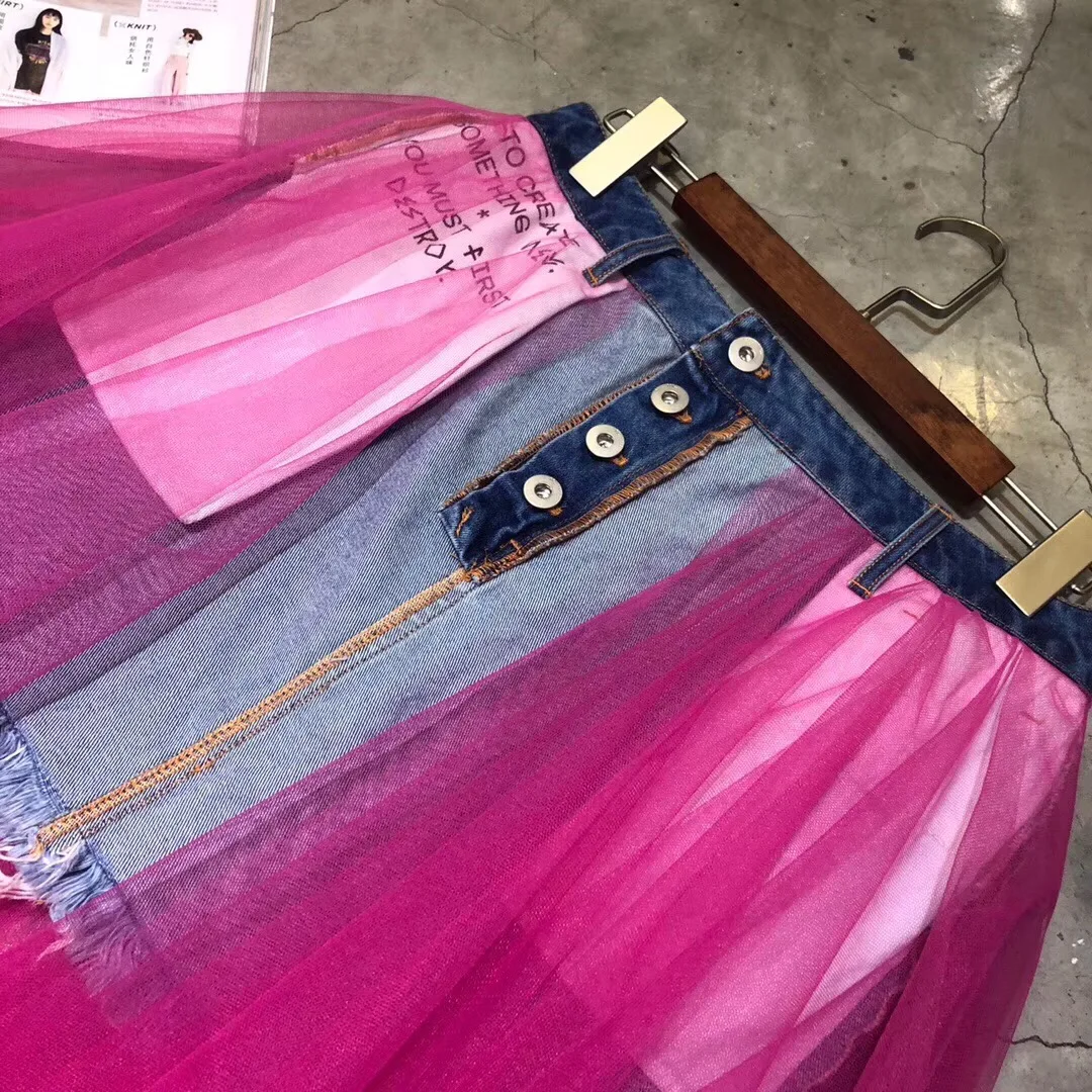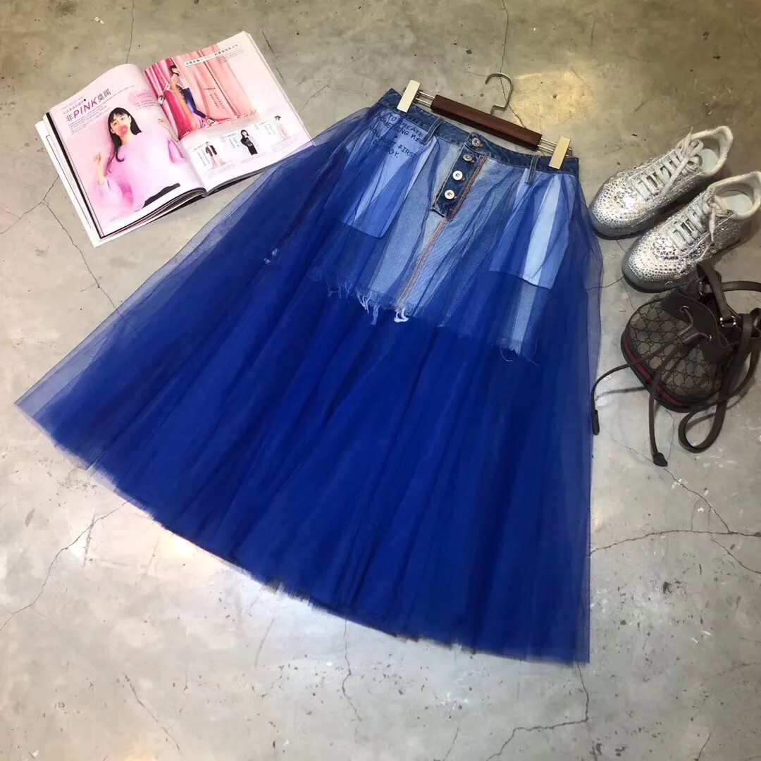 Высококачественная бальная юбка из сетчатого материала, модная дизайнерская Роскошная джинсовая юбка для женщин, 2019