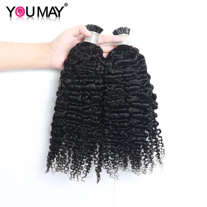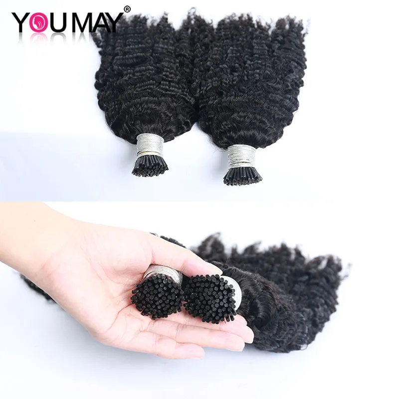 3B3C кудрявые накладные волосы с I кончиком для черных женщин, микробики, монгольские человеческие волосы, пряди, вплетаемые, объемные, на заколках, YouMay Virgin