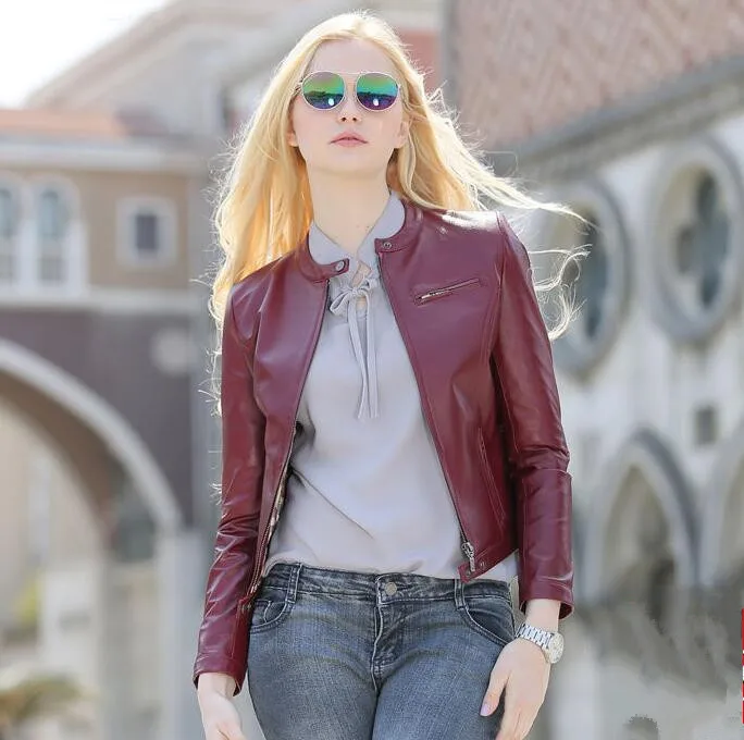 Женская куртка из натуральной овечьей кожи, красная черная приталенная брендовая короткая мотоциклетная Женская Осенняя одежда размера плюс
