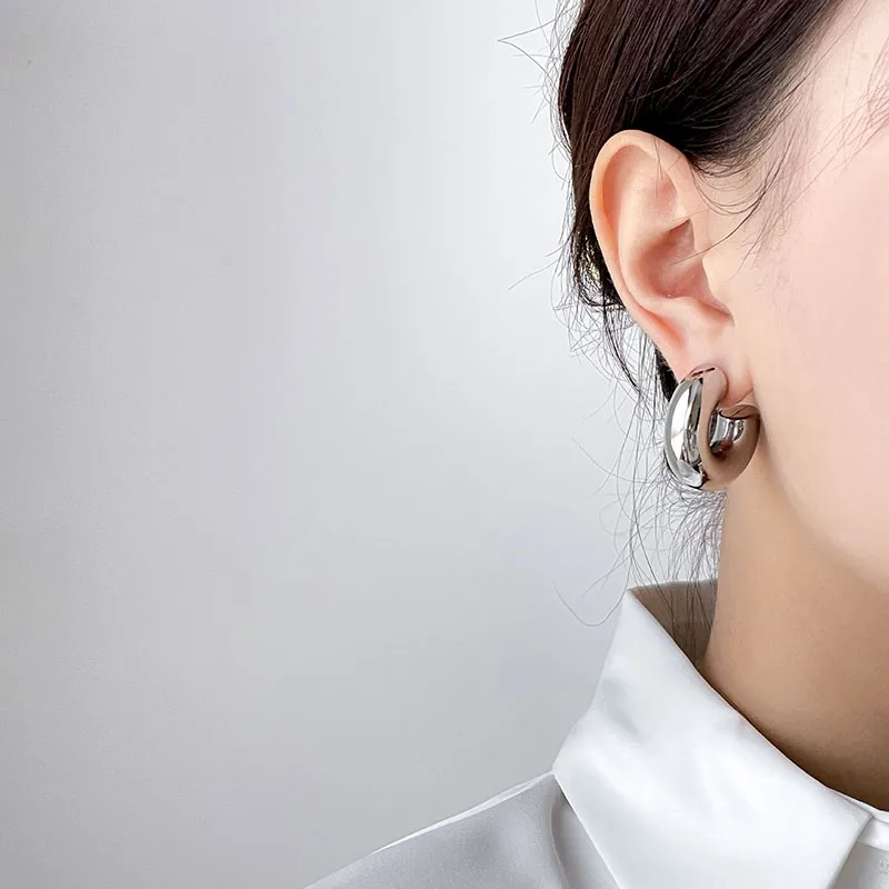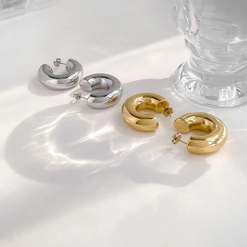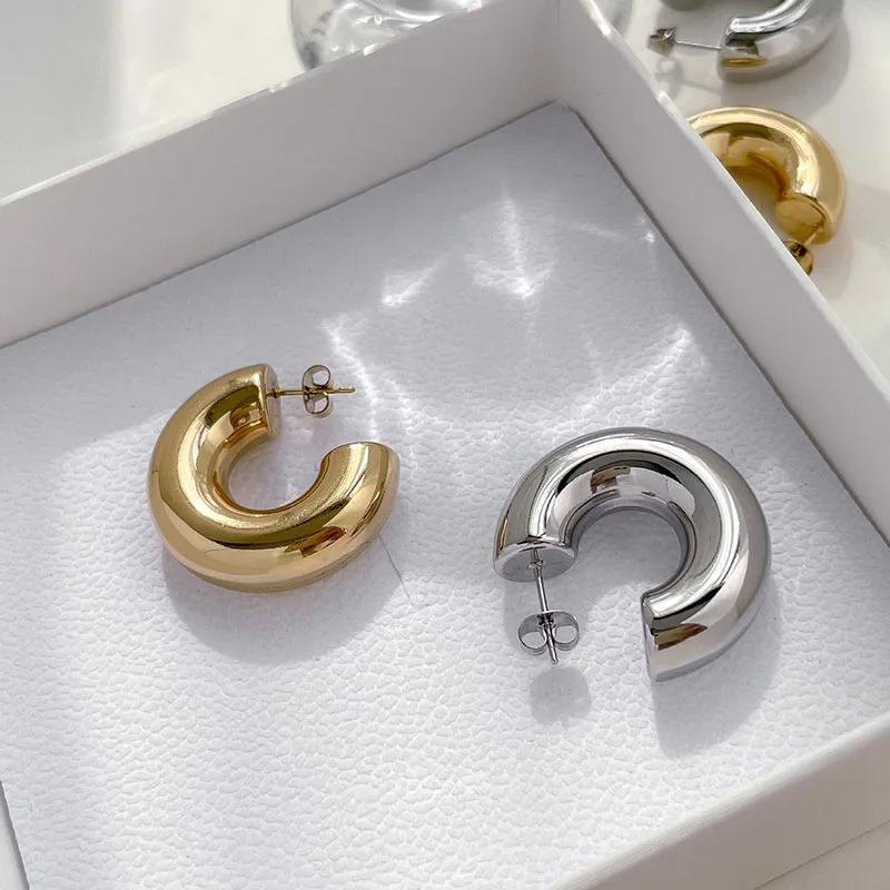 Маленькие массивные серьги-кольца для женщин, из нержавеющей стали золотого цвета, полукруглые серьги-кольца C, пустые минималистичные украшения на осень и зиму