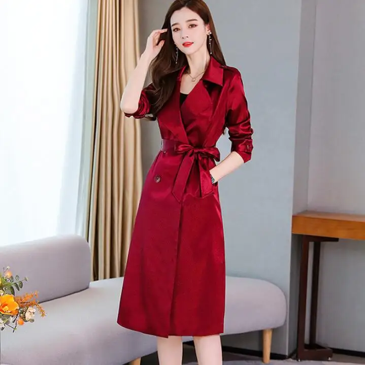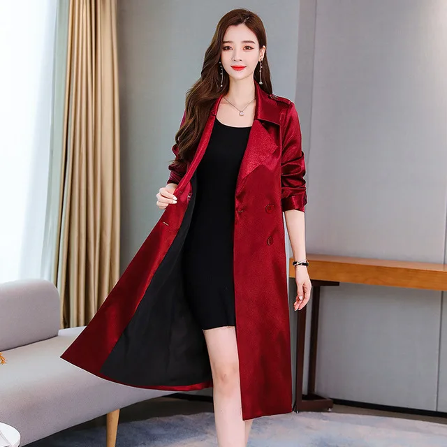 Женский двубортный Тренч, двубортный тренч на осень и зиму, женская верхняя одежда, бордовый, черный, зеленый