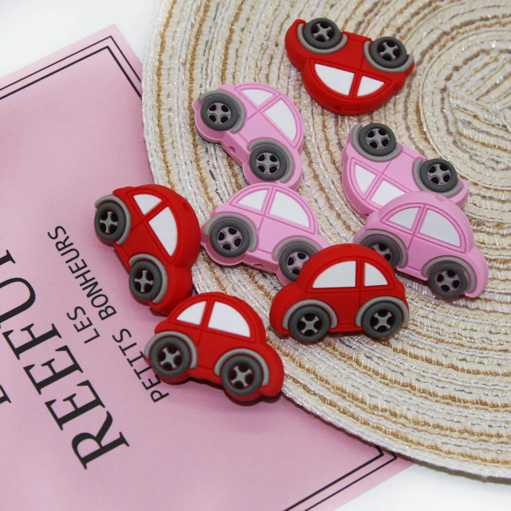 Милые 10 шт Мультяшные мини-машинки BPA бесплатно силиконовые бусины для соски клипсы детские игрушки Сделай Сам изготовление Ожерелья Детские Прорезыватели