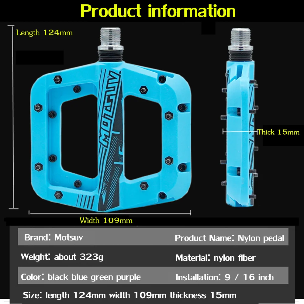 Бренд: motsuv Название продукта: нейлоновая педаль Вес: около 323 г Цвет: черный, синий, зеленый, фиолетовый Материал: нейлоновая нить Установка: 9 / 16 дюймов Размер: длина 124 мм ширина 109 мм Толщина 15 мм