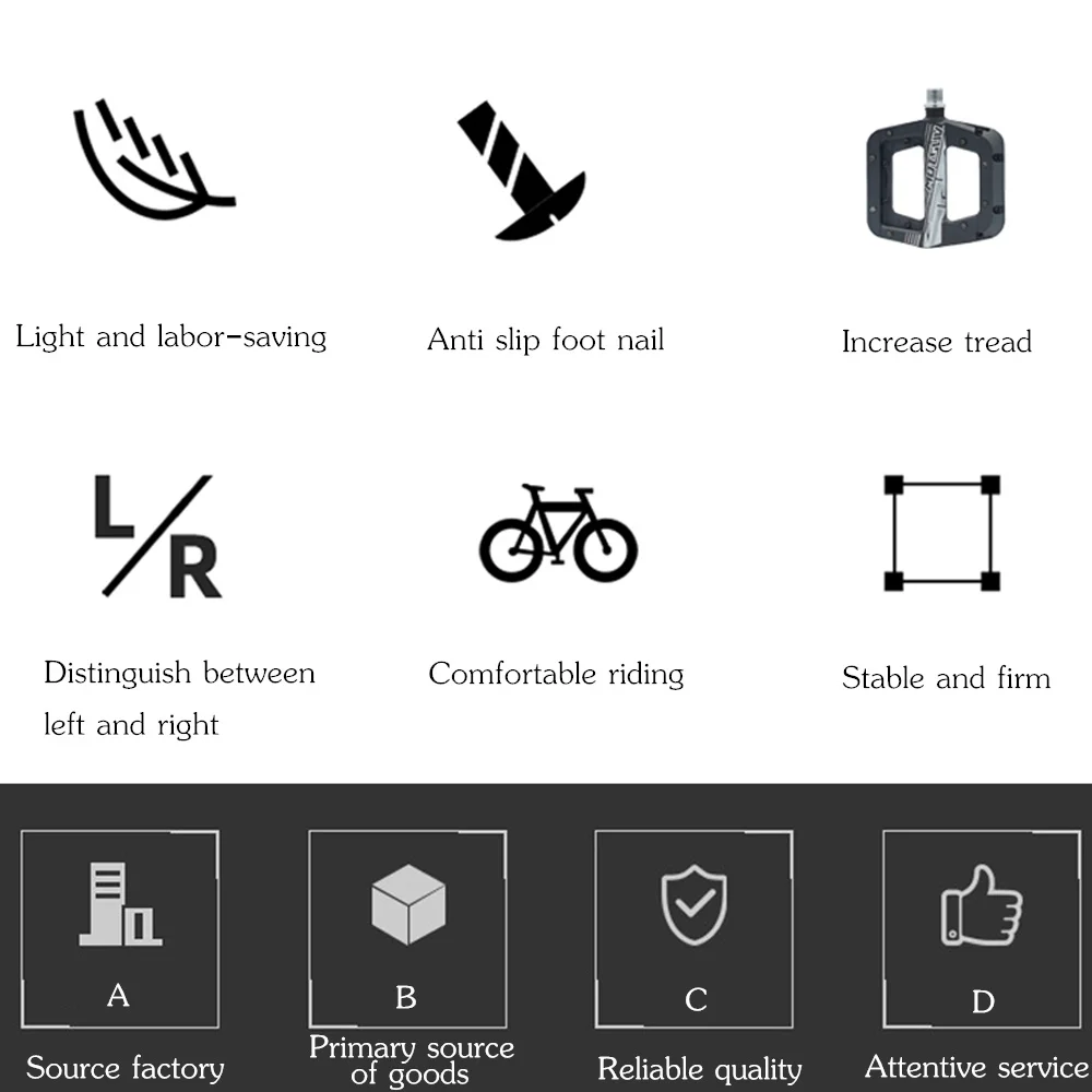 1. Легкий и экономичный 2. Противоскользящий ноготь 3. Увеличьте протектора 4. Различия между левым и правым 5. Комфортного катания 6. Стабильная и прочная A. Источник завод B. Основной источник товара C. Надежное качество D. Внимательное обслуживание