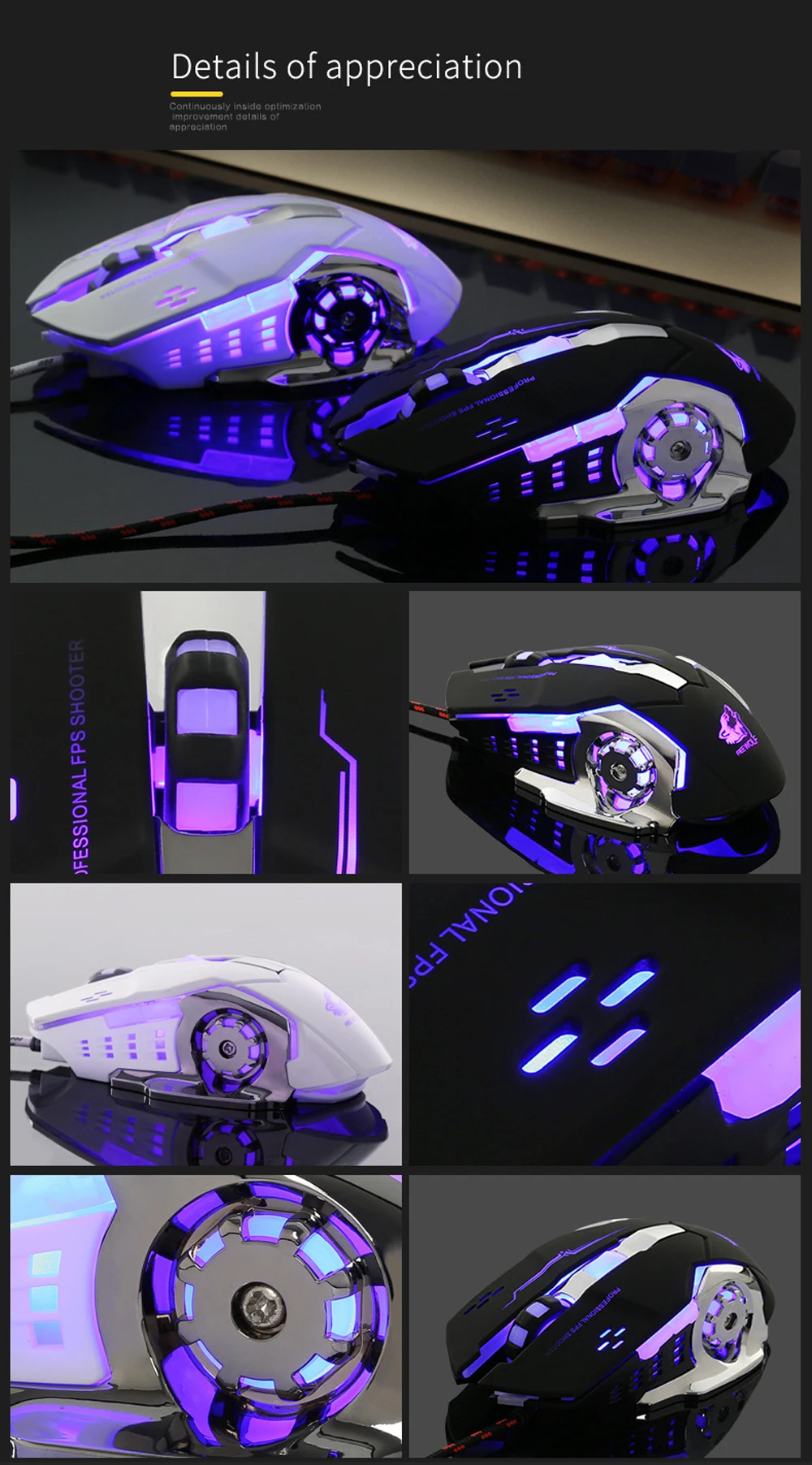 Проводная игровая мышь с бесшумной светодиодный светкой 8D 3200DPI Регулируемая USB оптическая эргономичная компьютерная мышь для ПК и ноутбука.