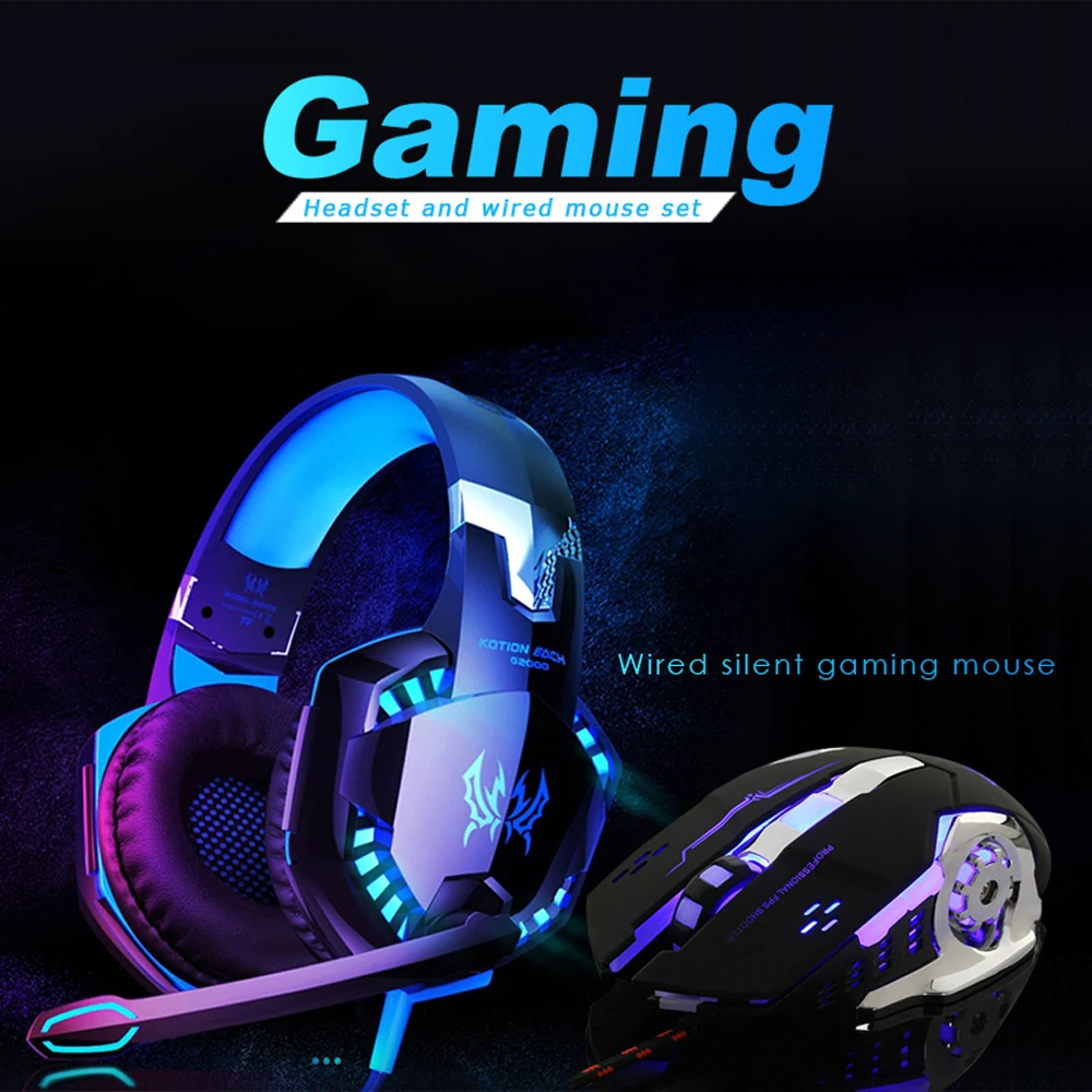 Игровая гарнитура G2000 + Проводная мышь Deep Bass Stereo helmet, проводные Игровые наушники, геймерские наушники с микрофоном для PS4, PS5, XBOX, ПК, ноутбука