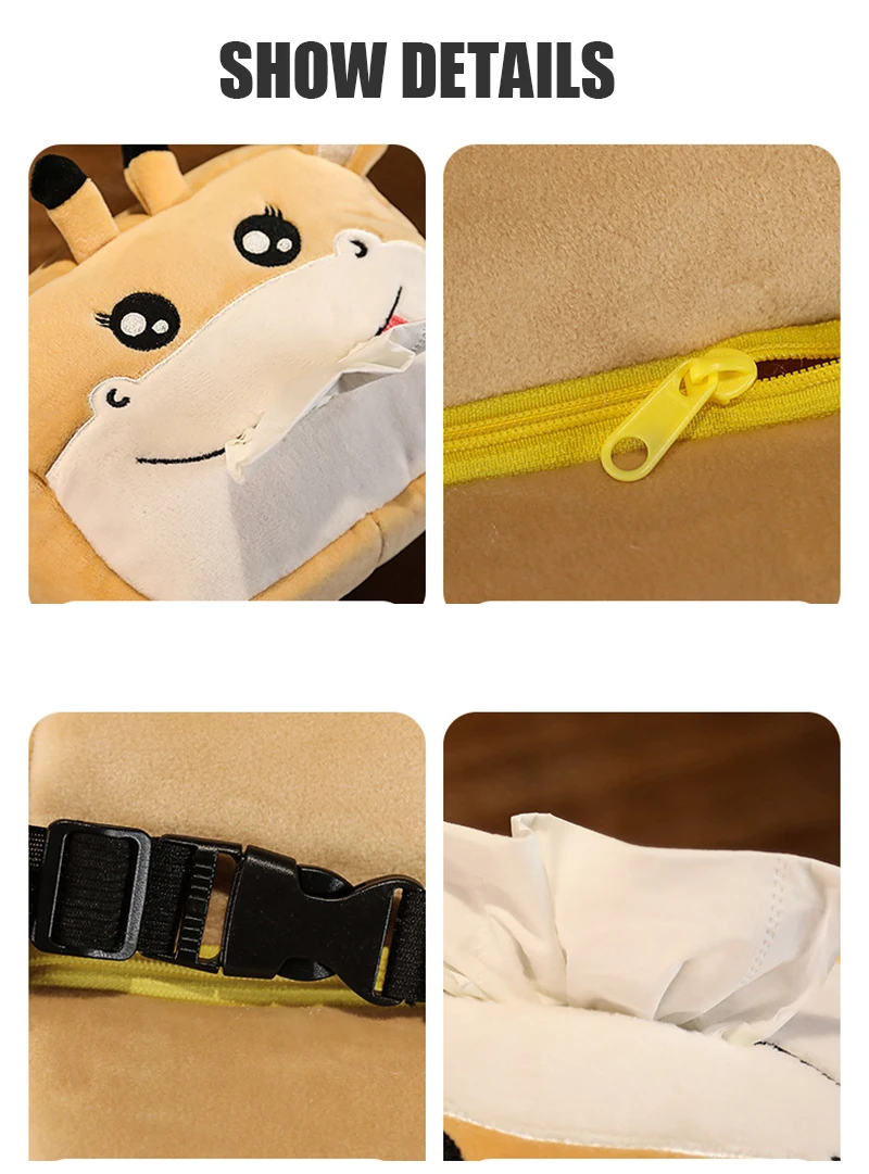 Особенности: 1. Изготовленная из мягкого материала, коробка для салфеток приятна на ощупь и долговечна для длительного использования. 2. Коробка очень красивая и забавная с изображением мультяшной свинки, акулы, динозавра или жирафа. 3. Идеально подходит для ресторана, офиса, дома, автомобиля, гостиничных номеров в качестве консолидации хранения салфеток, что делает ваше пространство более аккуратным. 4. Легко извлечь ткань из отверстия и можно использовать время и время. 5. Благодаря компактному размеру и легкости, коробка для салфеток легко носить с собой. Удобен в использовании и легко моется. Легко устанавливается. Спецификация: Цвет: как на изображении Материал: плюш Размер: около 16x11x6 см/6,30*4,33*2,36 дюйма Можно закрепить на подлокотнике автомобиля или спинке сиденья. Комплектация: 1 х Салфетка (в комплект не входит салфетка) Примечания: 1. Некоторые погрешности в размерах возникают из-за необходимости измерения вручную. 2. Из-за разницы между различными дисплеями изображение может не отражать фактический цвет изделия.