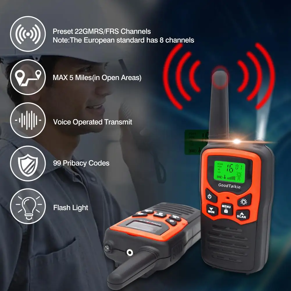 1. Легко носить с собой: двухсторонняя рация: предустановленные 22 GMRS/FRS каналы плюс 99 набор тонов CTCSS (коды конфиденциальности), обеспечивает широкое использование частоты (до 2178 комбинаций), без лицензии в США. Голосовая передача (VOX) поддерживает функцию громкой связи, блокировка клавиатуры предотвращает непреднамеренный ввод, тональные вызовы позволяют звонить другим радио перед отправкой голоса.Европейский стандарт имеет 8 каналов.