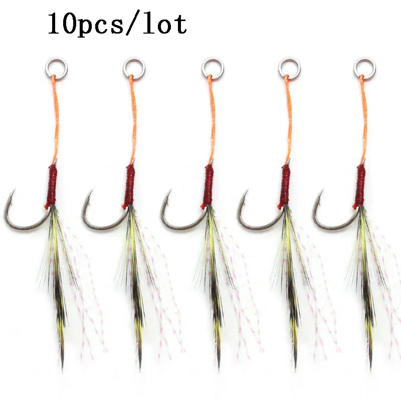 10 шт./лот вспомогательный крючок для ловли рыбы зажим с зазубринами вспомогательные крючки для ловли рыбы Радужное перо аксессуары для морской рыбалки вспомогательные крючки