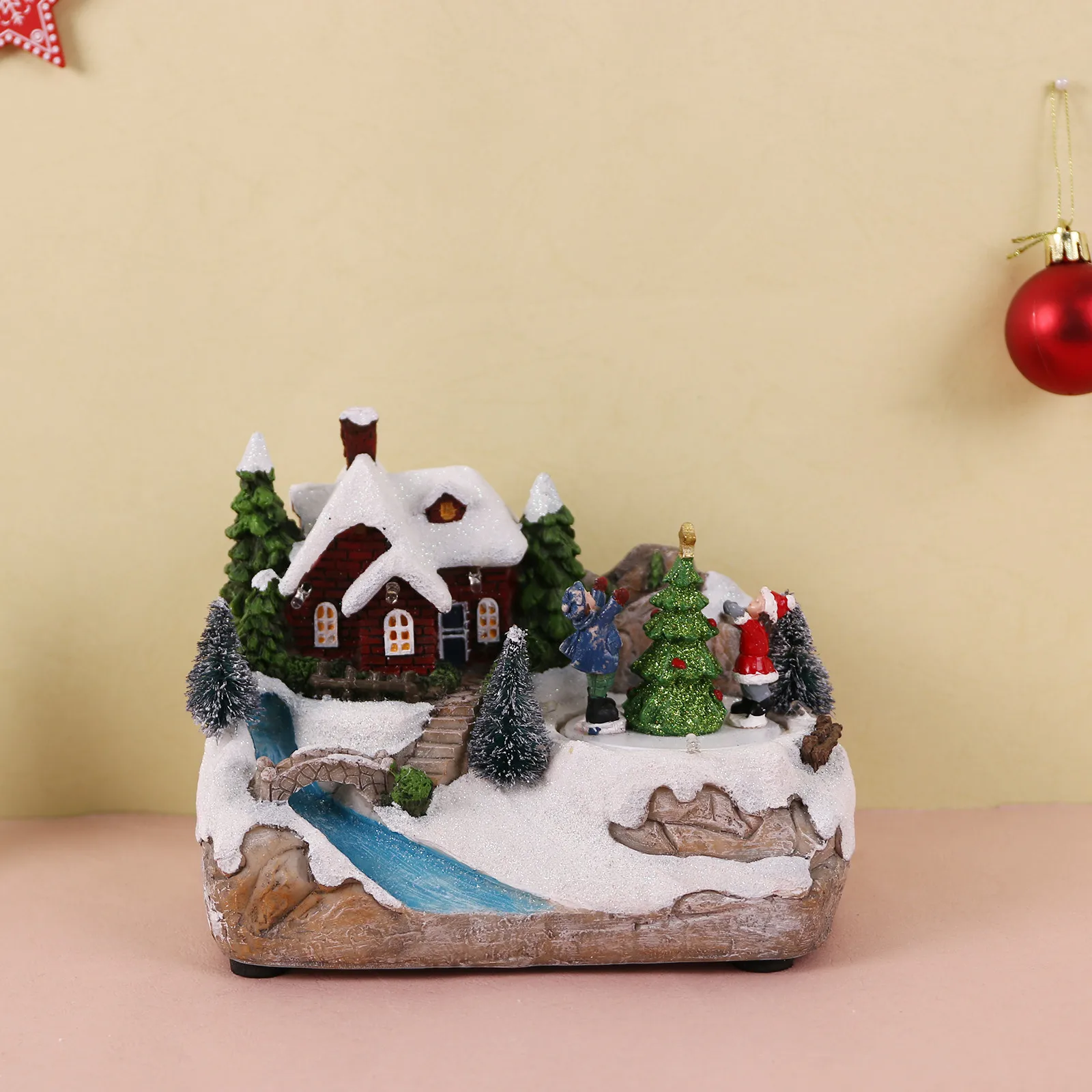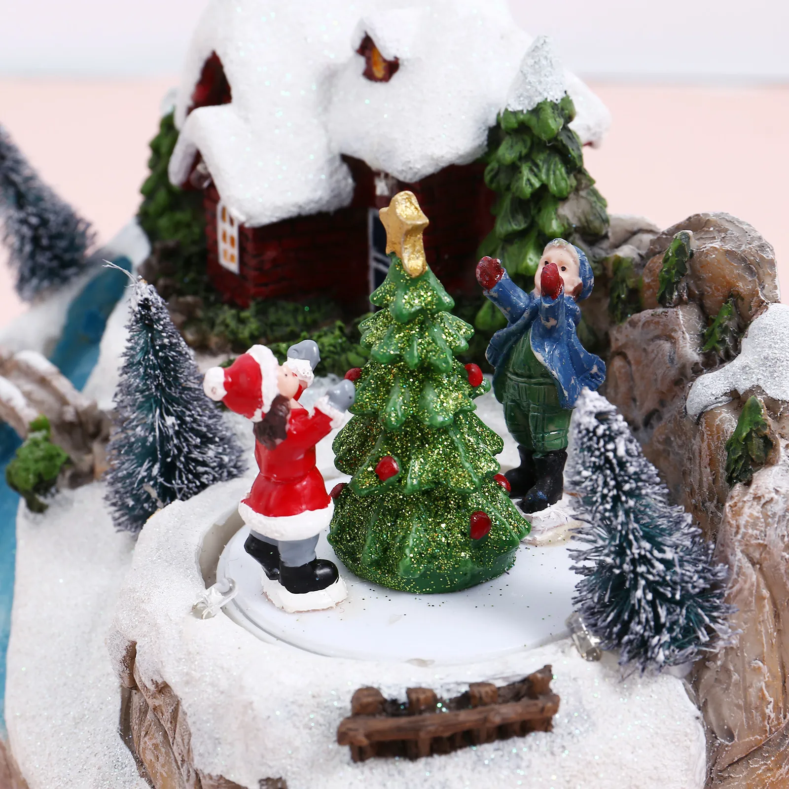 Рождественский деревенский дом, светодиодный Светильник со светящимися фигурами Вращающееся дерево