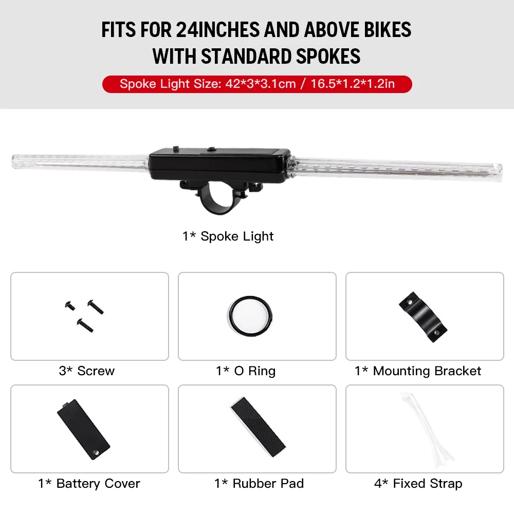 Прост в установке и может быть заменен на ваш велосипед спиц плотно, не будет прикасаться к другим части велосипеда и не так легко отваливаются.