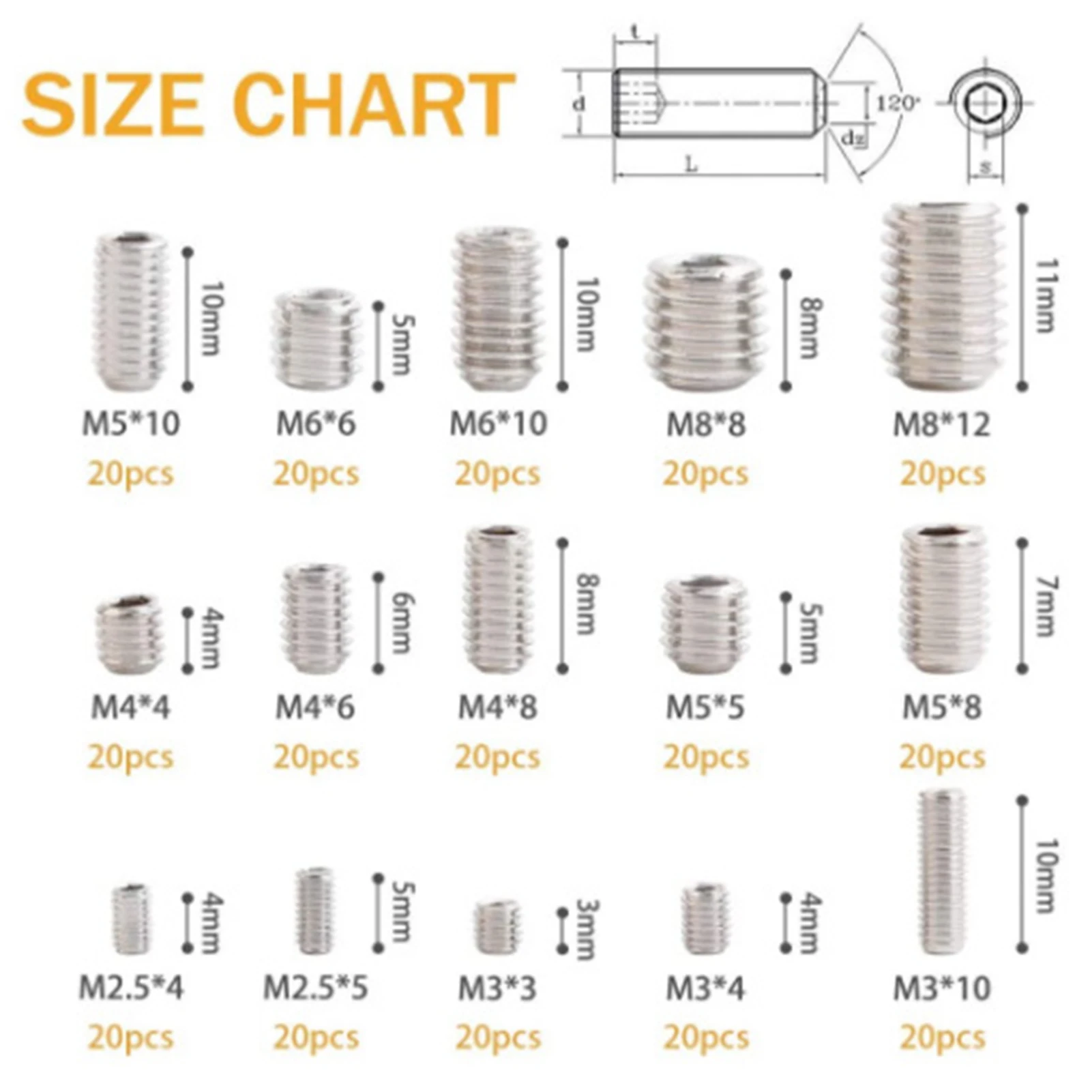 300 шт. M2.5/M3/M4/M5/M6/M8 винты с шестигранной головкой из нержавеющей стали с 6 гаейчные ключи Набор