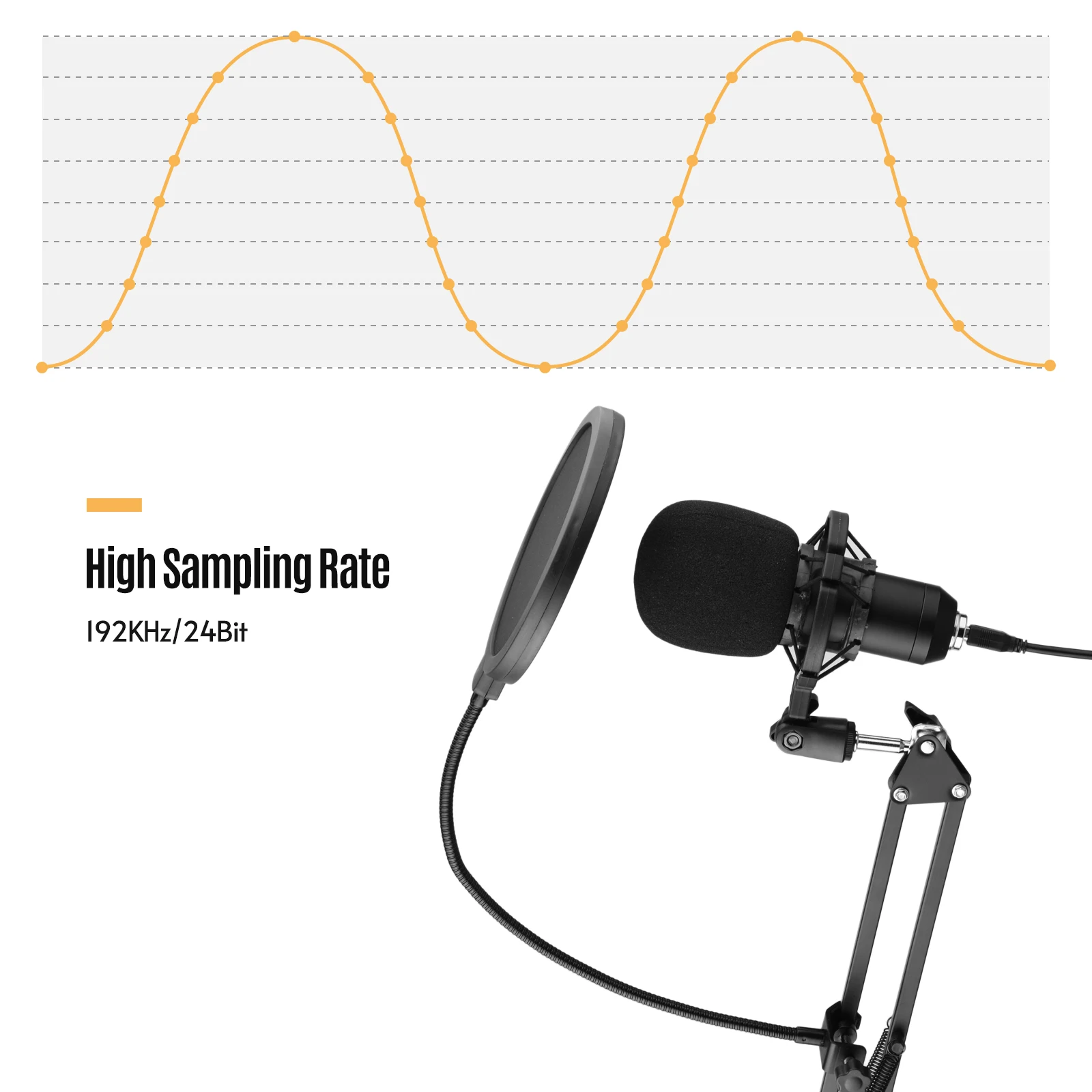 Конденсатор и кардиоидный микрофон с 192 кГц/24 бит высокой частотой дискретизации обладают высококачественным звуковым выходом и отличным звуковым эффектом.