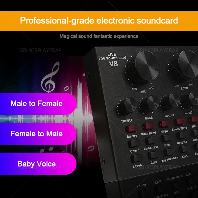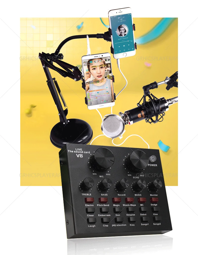 2. Регулировка размера реверберации, регулировка громкости микрофона, высокая регулировка басов, управление громкостью записи, управление громкостью музыки, контроль громкости (функция наушников).