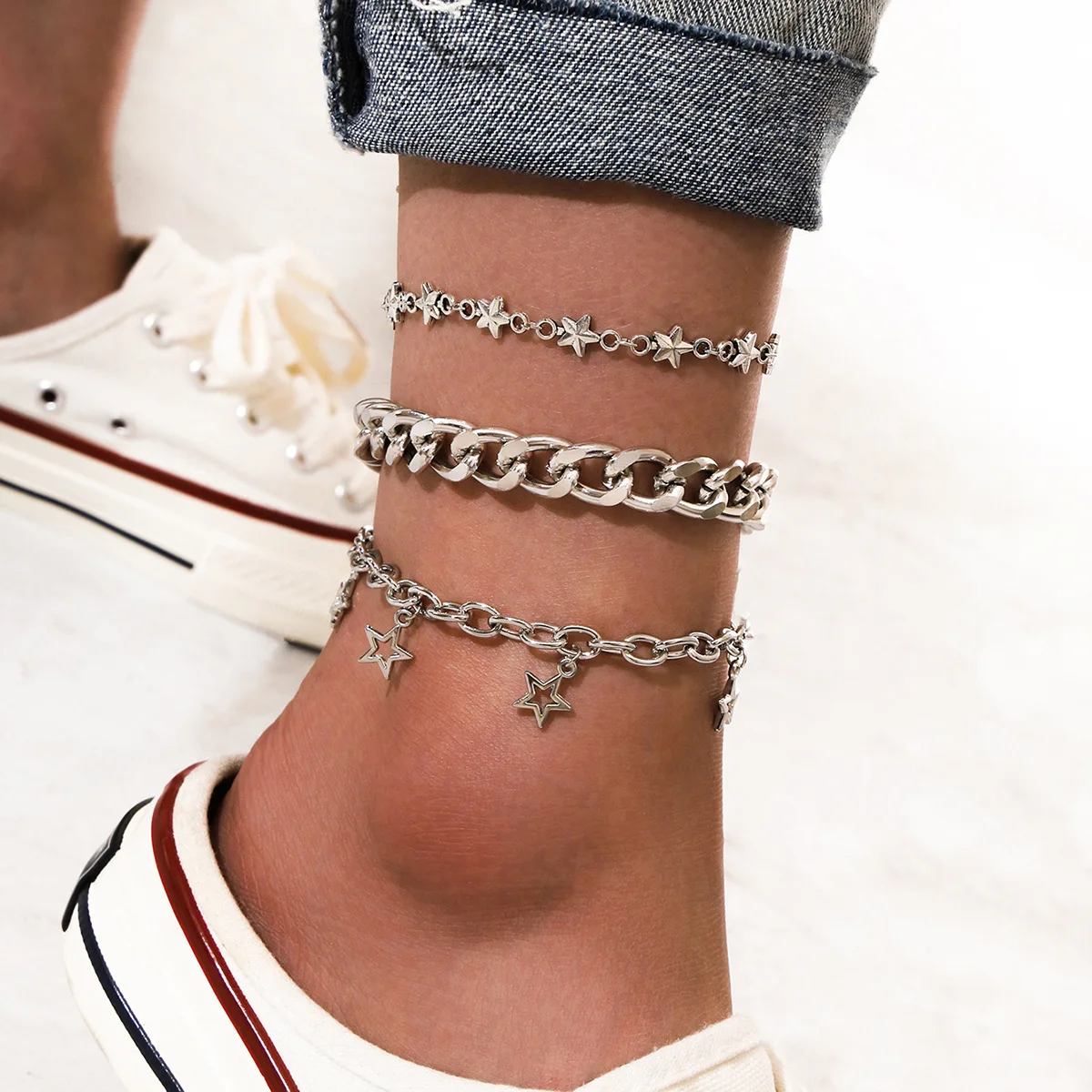 Женский браслет на ногу DIEZI, винтажный пляжный браслет в стиле панк с замком для девушек и женщин, браслет на ногу в стиле бохо, Серебряное ювелирное изделие