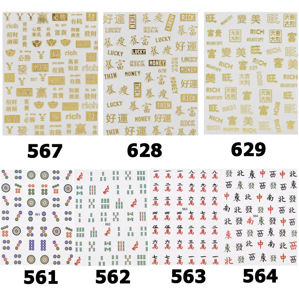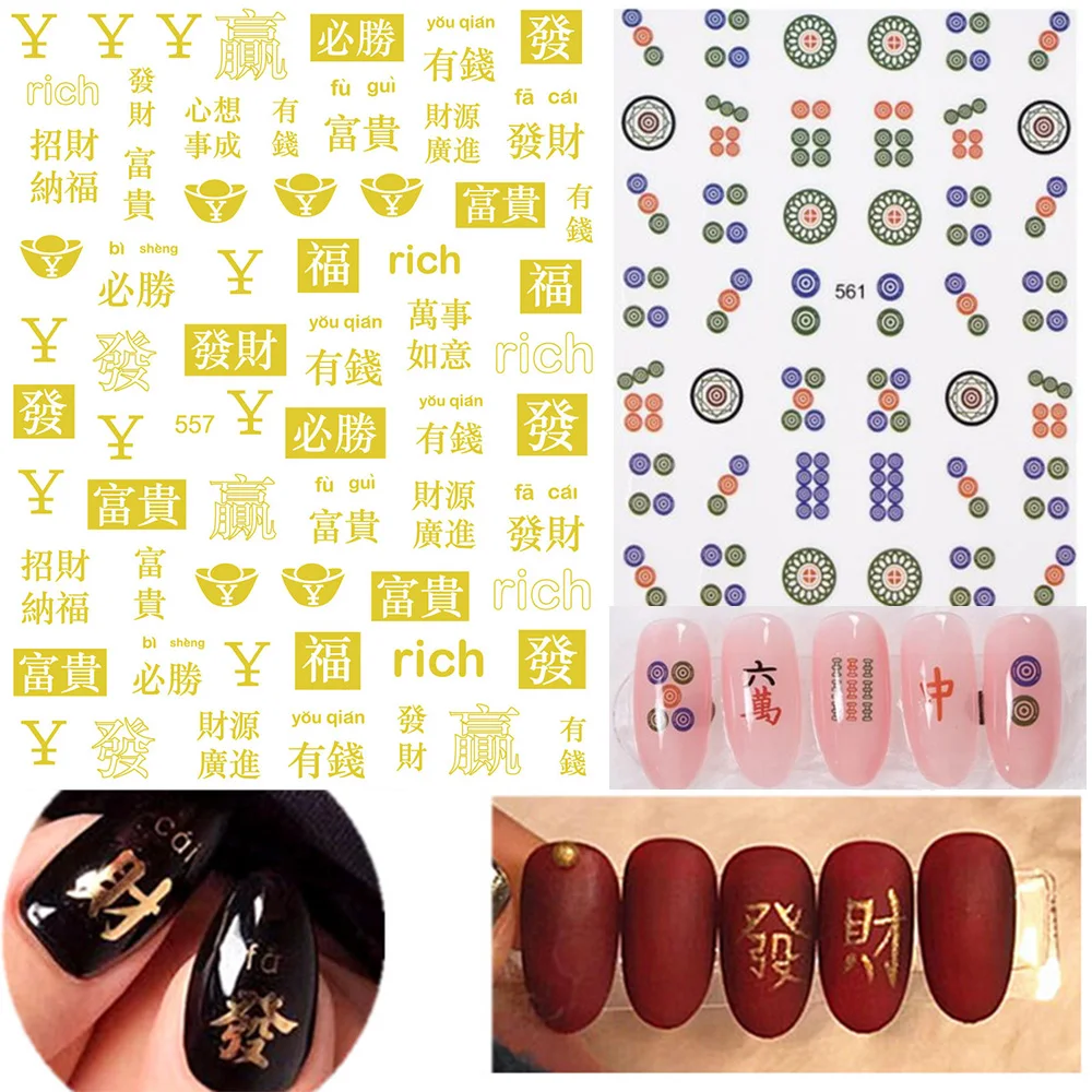Тип товара: наклейка и наклейка Дизайн: китайские персонажи каллиграфии Цвет: цвет насыщенный Количество: 1 лист Посылка включает в себя: 1 * стикер для ногтей