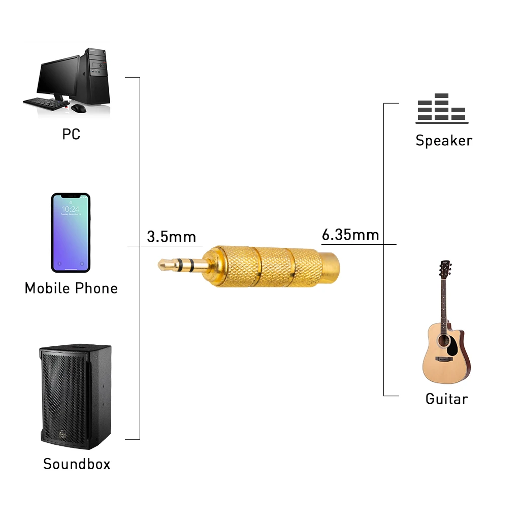 Подходит для подключения любого гнезда 3,5 мм с разъемом 6,5 мм.