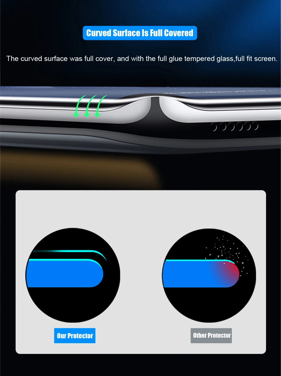 1.Full Coverage screen tempered film,the curved can also be protected.