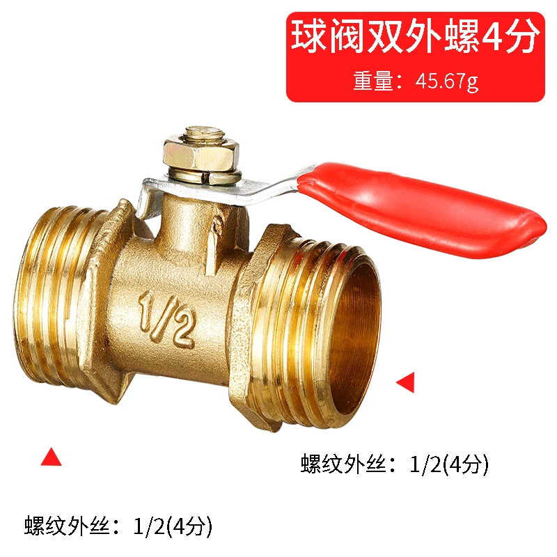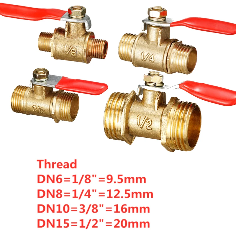 Спецификация: Название продукта: шаровой клапан Наружная резьба Размеры: (9,7 мм) G1/8 ''(12,7 мм) G1/4 дюйма (16 мм) G3/8'' (20 мм) G1/2'' Основной Цвет: золотистый, красный Материал: металл, латунь, пластик Посылка: шаровой клапан-1 шт.