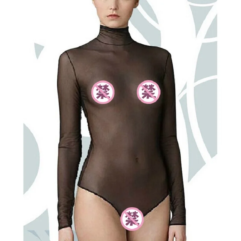 Взрослый Для женщин белье Одна деталь ажурные, с длинными рукавами, боди с высоким воротом из сетчатого материала Боди Эротическое комбинезон для искушения загружено