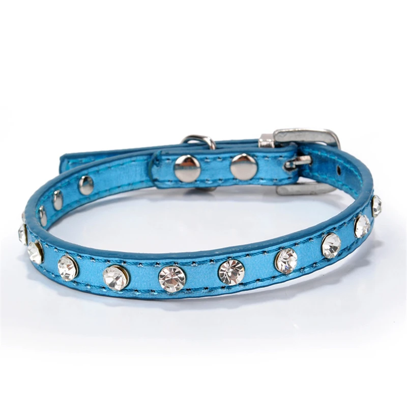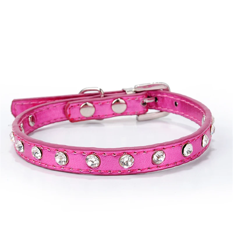 Кожаный ошейник для собак, ошейник из искусственной кожи с бриллиантами, ошейник для собак, 1 ряд, стразы, ожерелье, ошейник для собаки, аксессуары