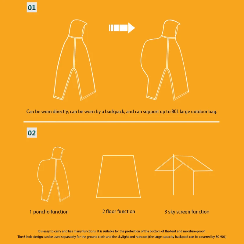 Многофункциональный дизайн, может использоваться как плащ, коврик, тент, уменьшает нагрузку на путешествия.