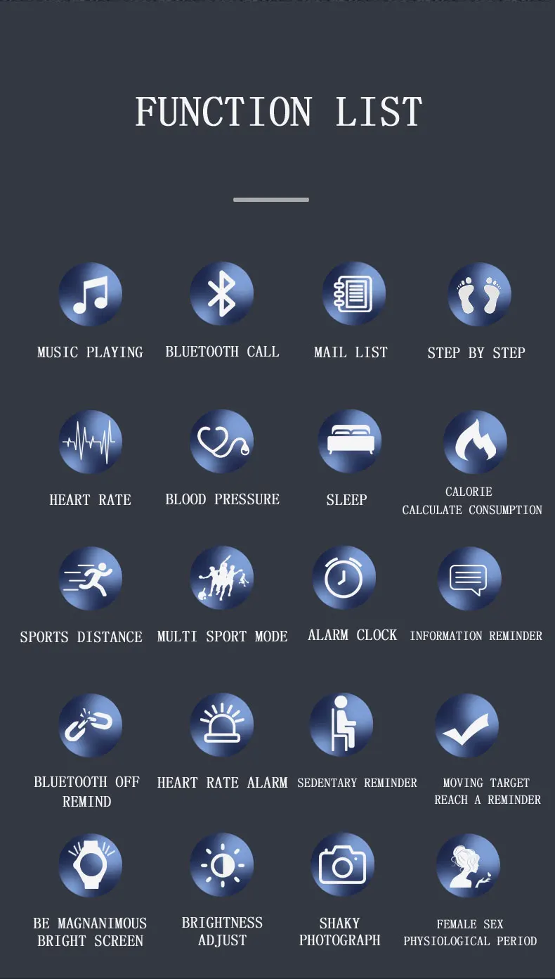 * Функция напоминания: будильник, SMS/сообщение с приложением, Bluetooth отключенный будильник, будильник сердечного ритма, сидение, напоминание о достижении цели в спорте