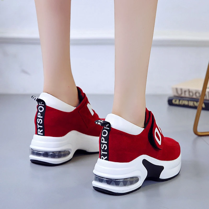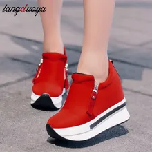 2021 женские кроссовки на платформе и высоком каблуке; Цвет черный, красный; Женские дышащие кроссовки, увеличивающие рост; Кроссовки на танкетке