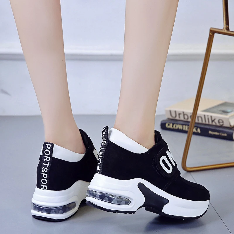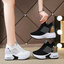 Женские высокие Прогулочные кроссовки 9 см на танкетке, спортивная обувь на толстой подошве, кроссовки для фитнеса, уличные женские кроссовки для бега и бега