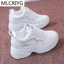 Массивные кроссовки, женские кроссовки 9 см, кроссовки на платформе, женские кроссовки, белые блестящие уличные спортивные туфли, 2021