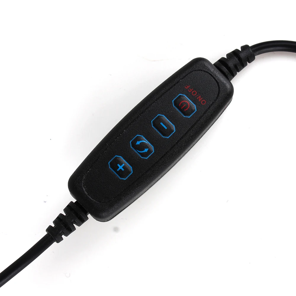 Кольцевой светильник с регулируемой яркостью 1,10 дюйма: Изготовлен из специально энергосберегасветодиодный светодиодных ламп 120 шт., питается от постоянного тока; Низкое энергопотребление; Низкое тепловыделение; безопасный и экологически чистые обеспечивает бестеневые ТТ, и даже светильник ing для того, чтобы помочь вам выглядеть более красивым 2. Регулировка яркости: 3 светильник режимов (белый, желтый + белый, желтый) и десять уровней яркости может удовлетворить все ваши потребности; В светильник головка может быть легко регулировать спереди и сзади 180 градусов через фиксацией ручки; головка кольцесветильник льника также может устанавливаться на подставке через Универсальный винтовой адаптер 1/4 дюйма (адаптер в комплект не входит) 3. Подставка для смартфона: оснащена гибким держателем для смартфона, ширина которого может регулироваться на 2,3-3,5 дюйма/5,8-8,9 сантиметров; гибкая трубка и держатель смартфона могут вращаться, что обеспечивает лучший угол съемки 4. Совместимые устройства: USB-разъем позволяет его использовать с несколькими устройствами, такими как USB-зарядное устройство, мобильное устройство, персональный компьютер, ноутбук или любое другое оборудование с USB-портом 5. Широкое Применение: широко применяется в различных ситуациях, таких как макияж, съемка видео на YouTube, свадьба, заполнение внутренсветильник Том, фотография на открытом воздухе, рекламная фотография, видеосъемка, стриминговые медиа, чтение, или других видов деятельности в повседневной жизни Описание: 1,10-дюймов настольный затемнения светодиодный кольцевой Светильник изготовлен из специальной энергосберегающий светодиодный бусы и приведенный в действие постоянного тока. 2. Есть три светильник режимов (белый, желтый + белый, желтый) и десять уровней яркости, которые могут удовлетворить все ваши потребности. 3. Он оснащен держателем смартфона, шириной которого можно регулировать от 2,3 до 3,5 дюймов (5,8-8,9 сантиметров). 4. Светильник садку можно установить на стойку. Съемный и портативный. Удобно носить с собой и использовать. 5. Этот кольцевой светильник можно использовать в различных ситуациях, таких как макияж, съемка видео на YouTube, свадьба, заполнение внутренсветильник Том, уличная фотография, рекламная фотография, видеосъемка, стриминговые медиа, чтение, или других видов деятельности в повседневной жизни. Технические характеристики: Источник питания: USB 5 В Мощность: 8 Вт Количество лампочек: 120 Цветовая температура: 3800-6800 к Индекс цветопередачи:> 70 Внешний диаметр: 26 см Внутренний диаметр: 20 см Длина кабеля: 1,8 м Примечание: Смартфон, ноутбук, компьютер, внешний аккумулятор, зарядное устройство USB в комплект не входит. Комплекпосылка ция: 1 x 10-дюймовая шпилька светодиодный кольцевой светильник