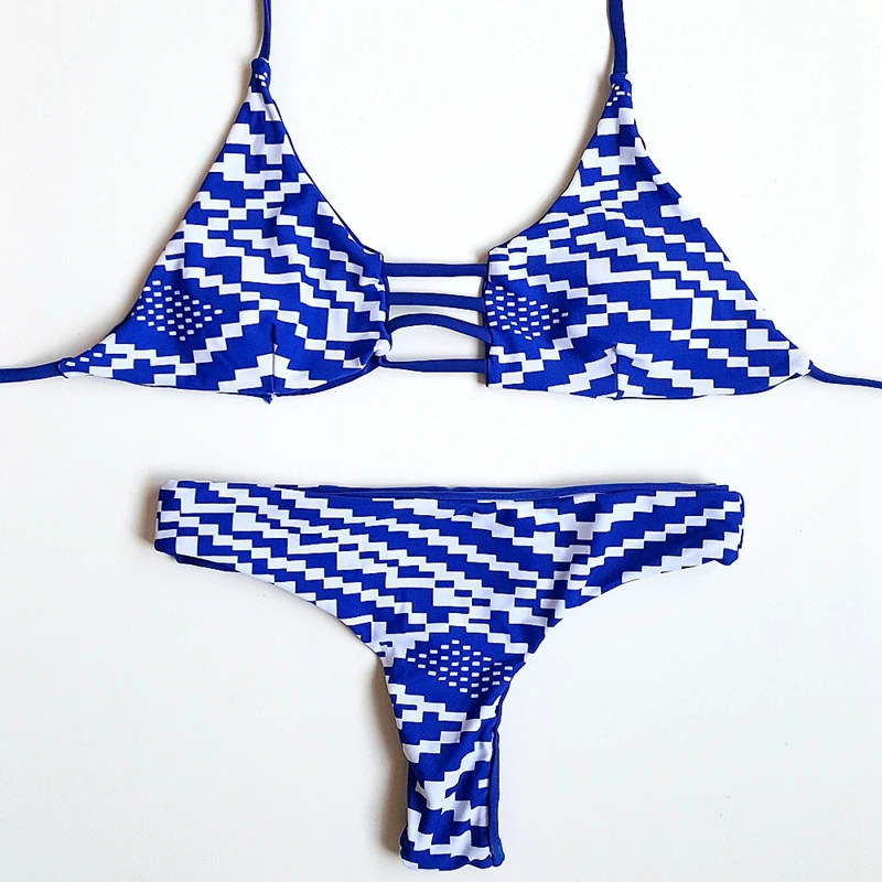 Номер позиции: DK48 1. Основная ткань: 80% нейлон, 20% спандекс 2. Геометрический принт 3. Бразильское дно 4. Веревка 5. Полностью на подкладке 6. Размер: M.L.