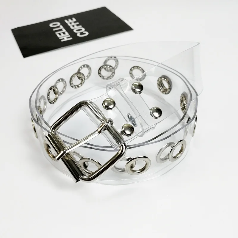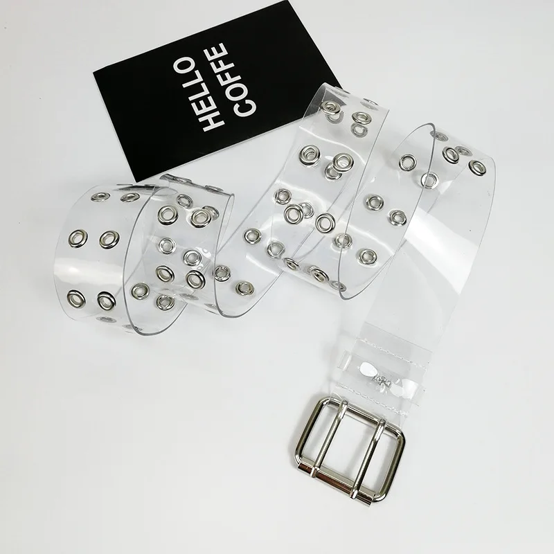 Прозрачный ремень из ПВХ для женщин, с двумя рядами втулок,