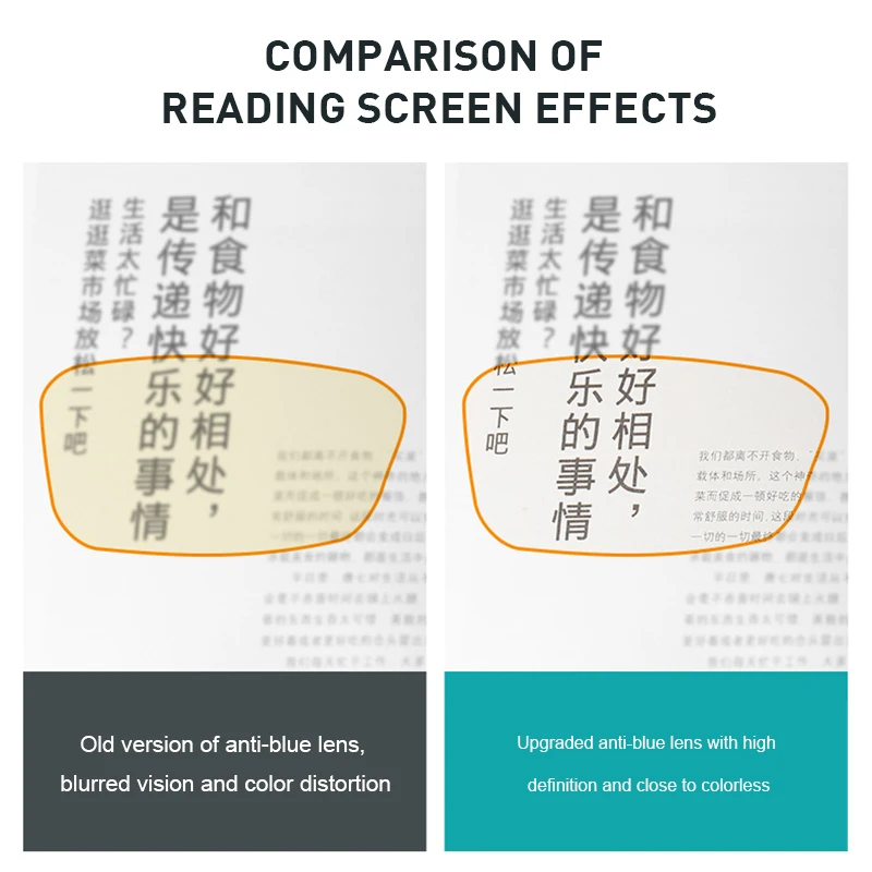 3. Экраны мобильных телефонов, компьютеров и других цифровых продуктов излучают вредные источники светильник, антисиняя линза эффективно блокирует синий светильник, излучение, уменьшает повреждение глаз.