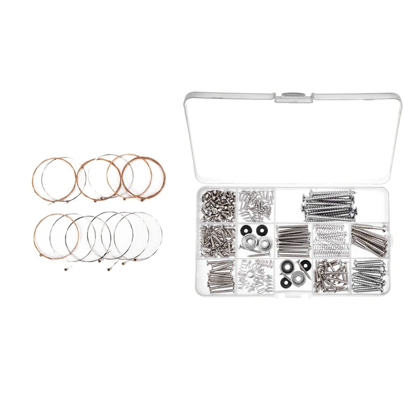 2 набора аксессуаров для музыкальных инструментов: 12 струн для гитары и 1 комплект винтов для электрогитары