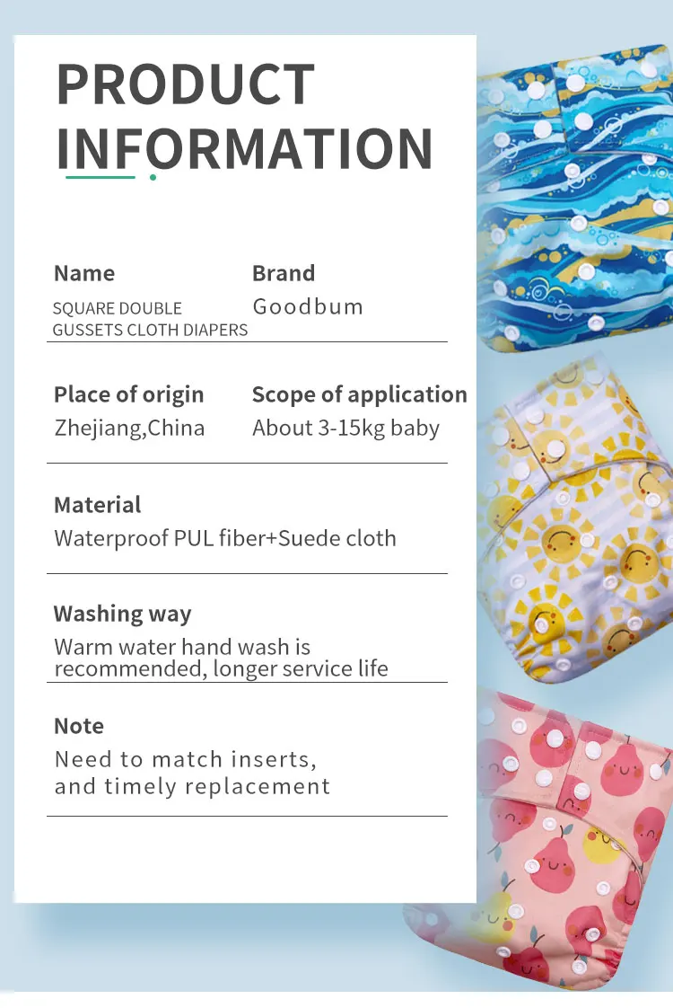 Материалы: полиэстер и ТПУ водонепроницаемые (для тканевых подгузников)
