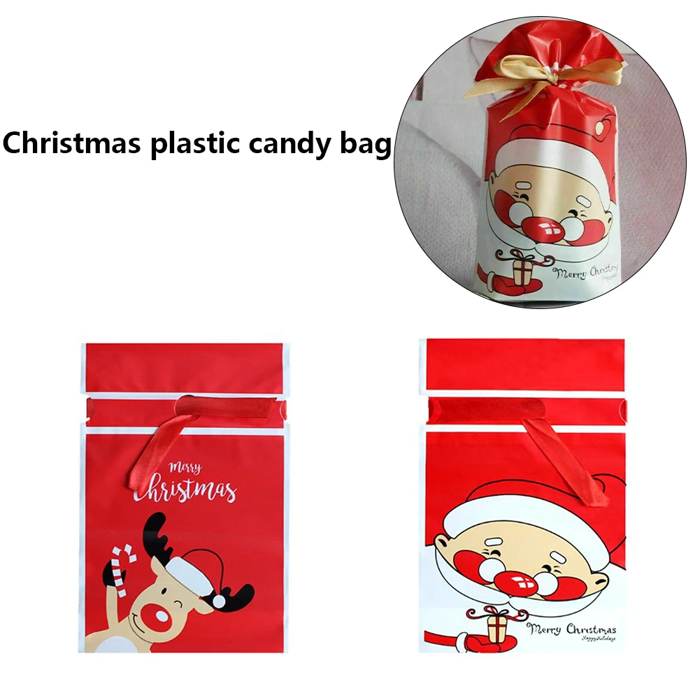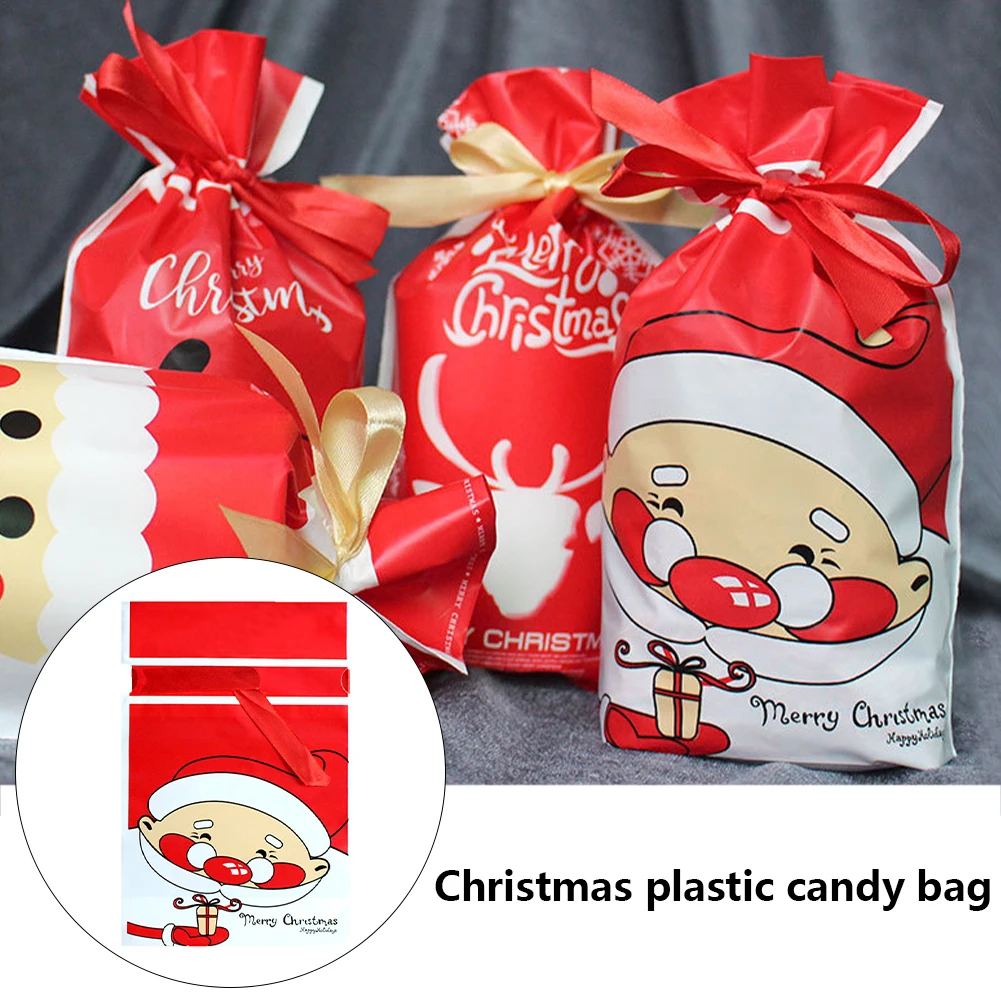 Christmas Drawstring Bags Santa Claus Plastic Gift Bag Packaging Biscuit Candy Bag Merry Christmas Dropship