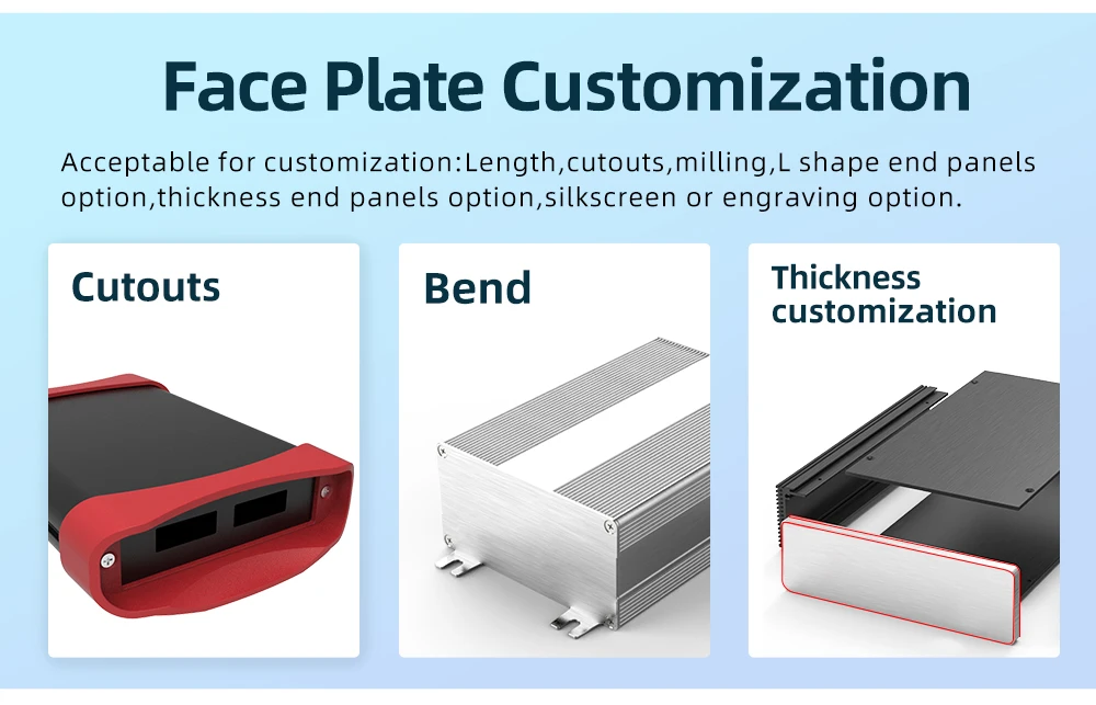 Мы являемся профессиональным производителем алюминиевых корпусов. Существует множество обрабатывающих центров с ЧПУ, фрезерный станок с ЧПУ, штамповка, сверление, шлифовальный станок, пескоструйная машина и прочее современное обрабатывающее оборудование. Специализируется на производстве, алюминий, алюминиевое шасси, алюминиевая панель переключателя, набор для самостоятельного сбора ходовой части панель усилителя, наша продукция широко используемых инструментов, электроэнергия, телекоммуникации, радио и телевидение, медицинское оборудование, сетей, отели, военные принадлежности.