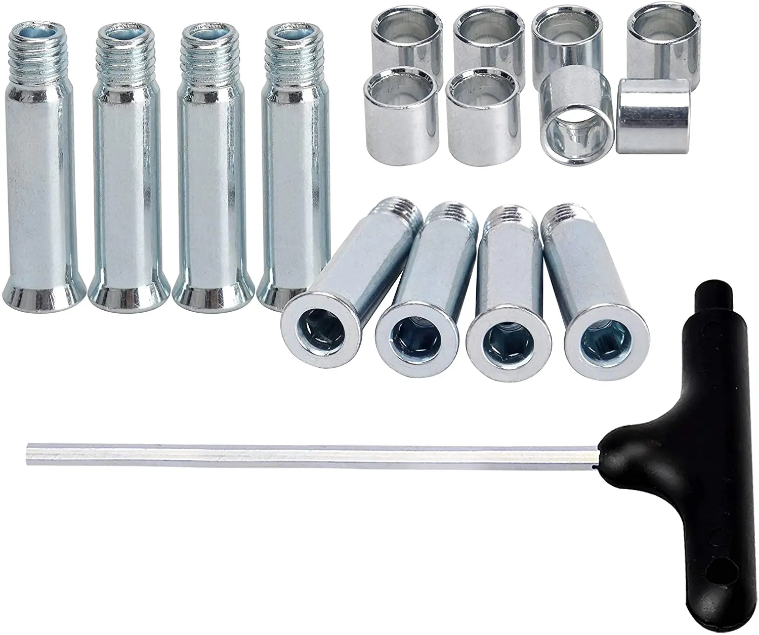 【Упаковка включает в себя -- упаковка из 8 осей, 8 разделителей колес, 1 шестигранный ключ с Т-образной ручкой. Это избавит вас от щепотки, если вы не можете найти или заменить свои конкретные недостающие оси. 【Совместимость и Размер 】 -- диаметр оси 8 мм, внутренний диаметр колеса 8 мм, подходит для большинства саксофонов с 8 мм осями. Пожалуйста, проверьте характеристики на втором изображении продукта, чтобы убедиться, что он соответствует вашим спецификациям. Очень важно измерить размер подшипника колеса для обеспечения правильной посадки. 【Легко установить -- с 4 мм Т ручкой шестигранный ключ для легкой установки. Эргономичная ручка снимает давление при ослаблении или затягивании. 【Прочная конструкция 】-материал из алюминиевого сплава делает его крепким и не легко ослаблять, и он может обеспечить гибкое вращение, прочный для использования. Эти роликовые коньки Сменные оси подходят для хорошего куска роликовых коньков марки с использованием алюминиевых рам. 【Обеспечивает плавное движение 】-с осью и прокладкой, чтобы лучше зафиксировать подшипники, что помогает уменьшить сопротивление подшипников и сделать движение подшипника более плавным, помогает предотвратить падение подшипников.