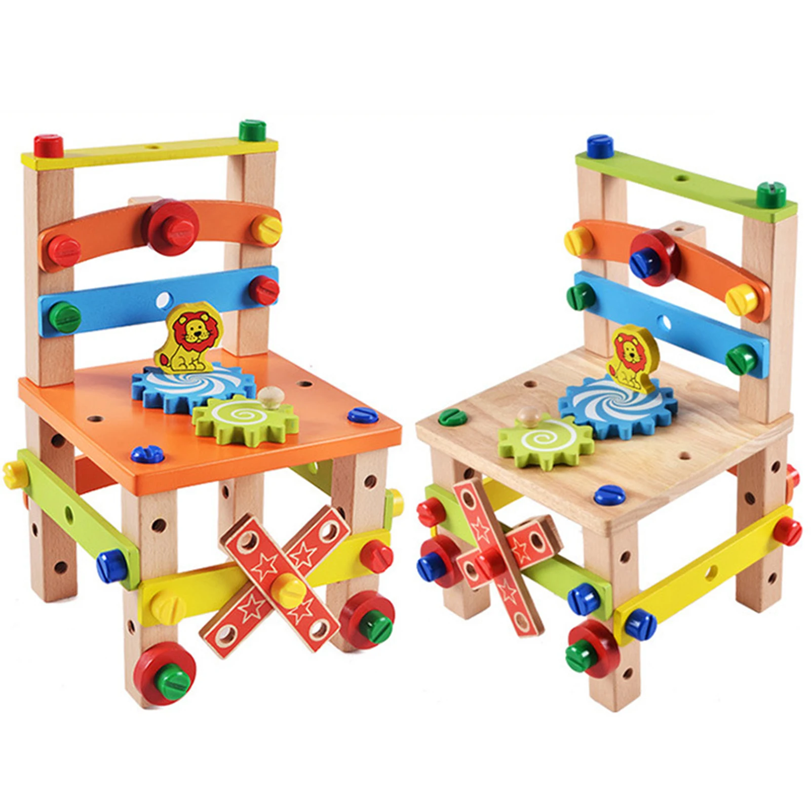 Детский деревянный сборный стул Монтессори набор гаек комбинированная развивающая игрушка