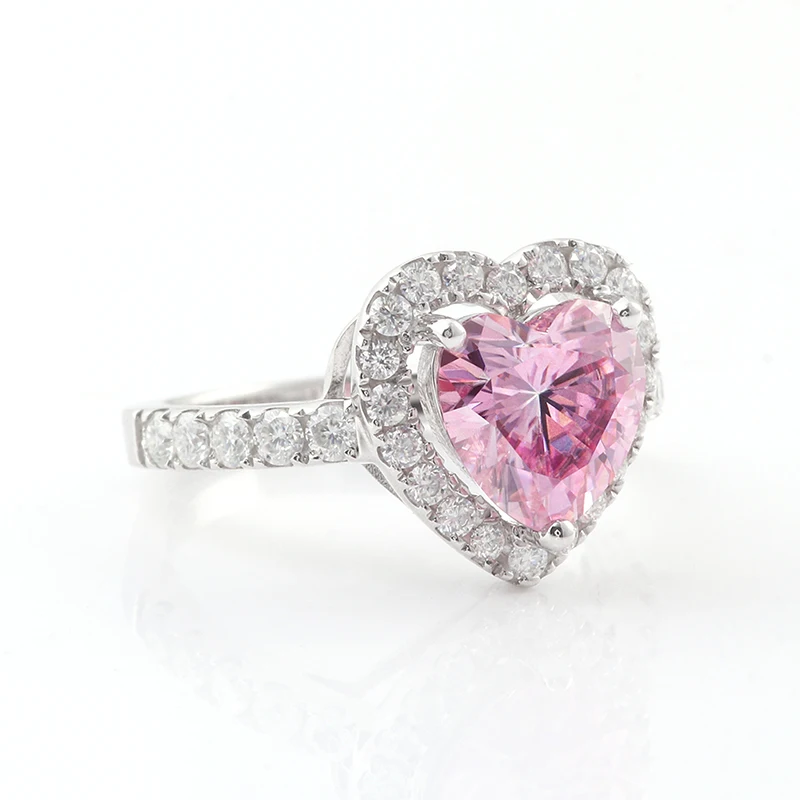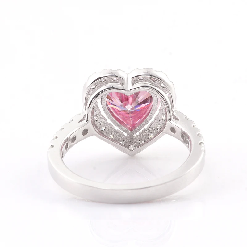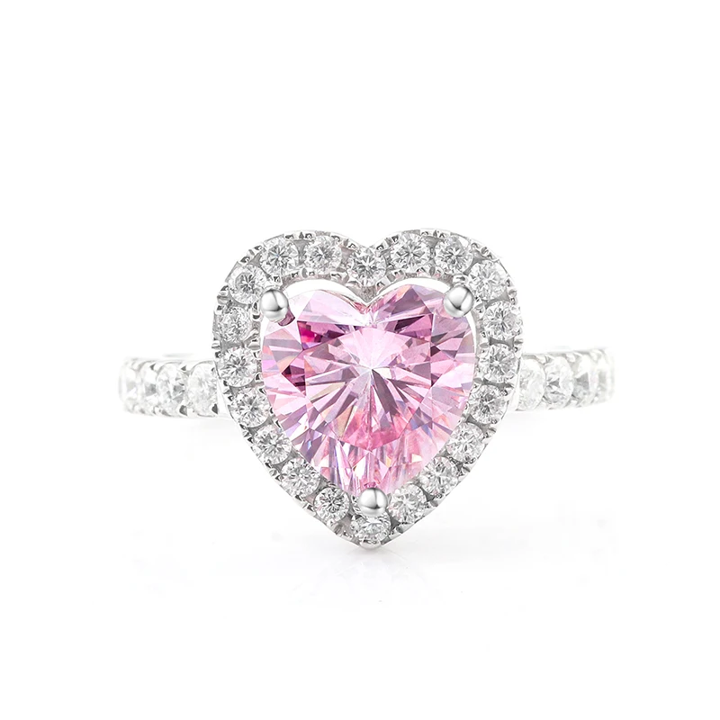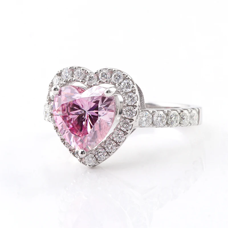 Индивидуальные подарок на день Святого Валентина 925 Серебряное кольцо 2ct 8 мм Сердце Вырезать Розовый Moissanite кольцо DEF цвет маленькие Moissanite камни