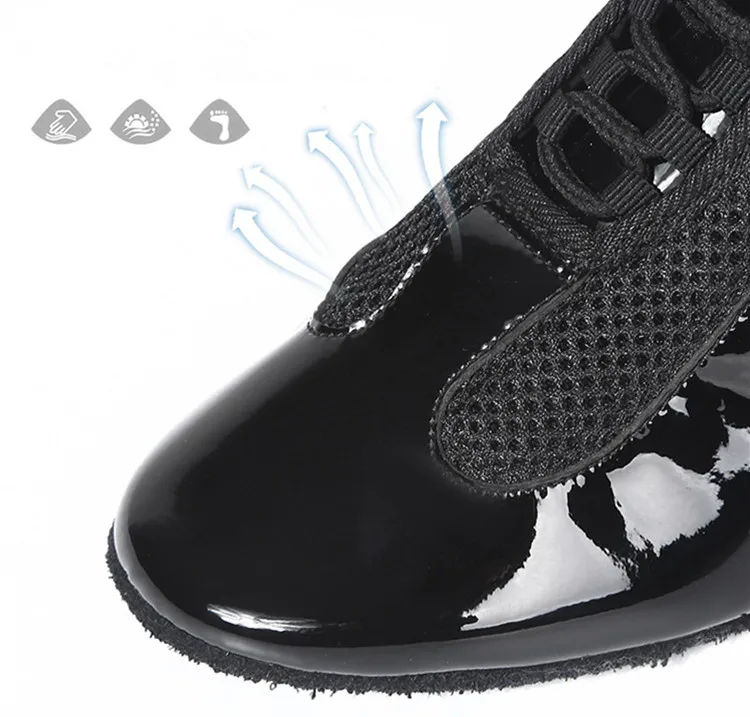 Модель: Танцевальные Кроссовки Материал: кожа с сеткой Подошва: Замшевая подошва, резиновая подошва Размеры: US4-US8,EU34-42 Цвет: черный, кожа Каблук: 3,5-4 см
