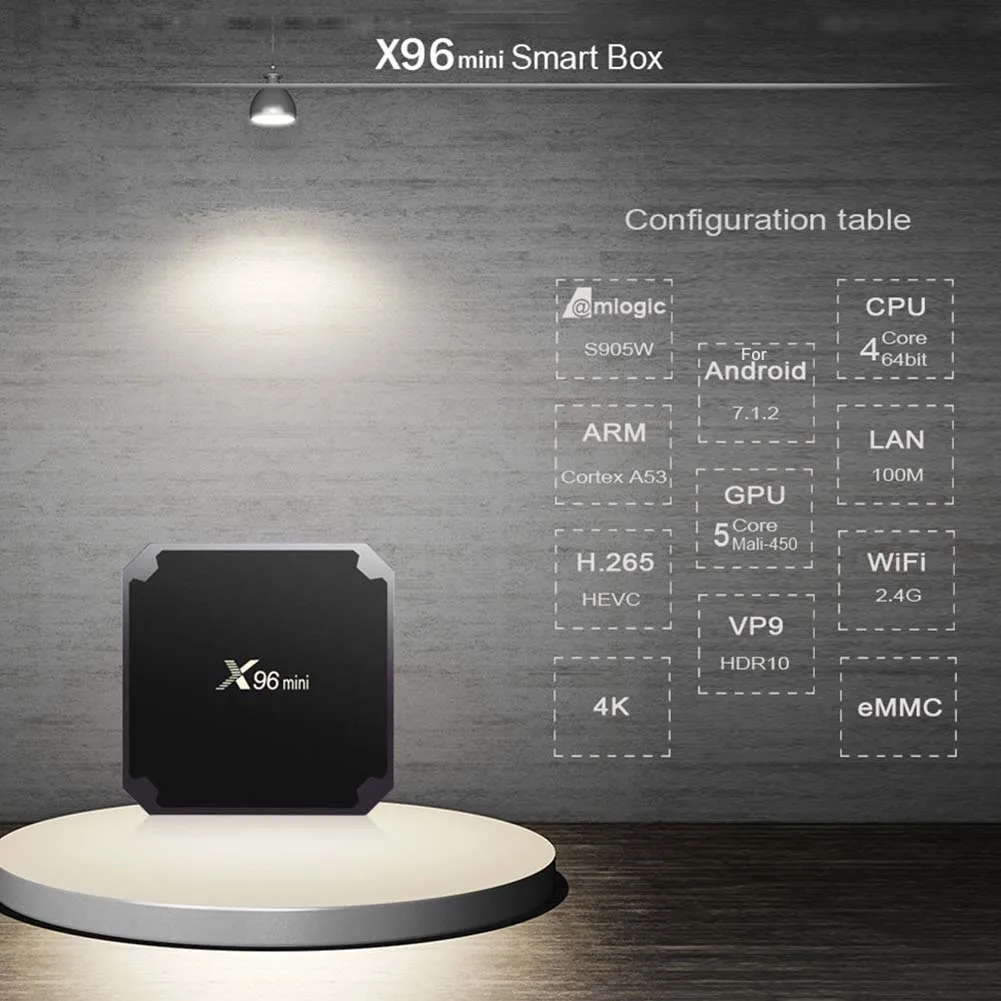 Оснащен S-905W четырехъядерным процессором Mali 450 penta core, до 750 МГц.