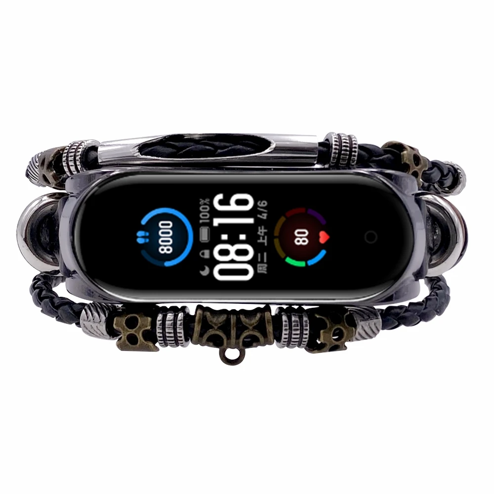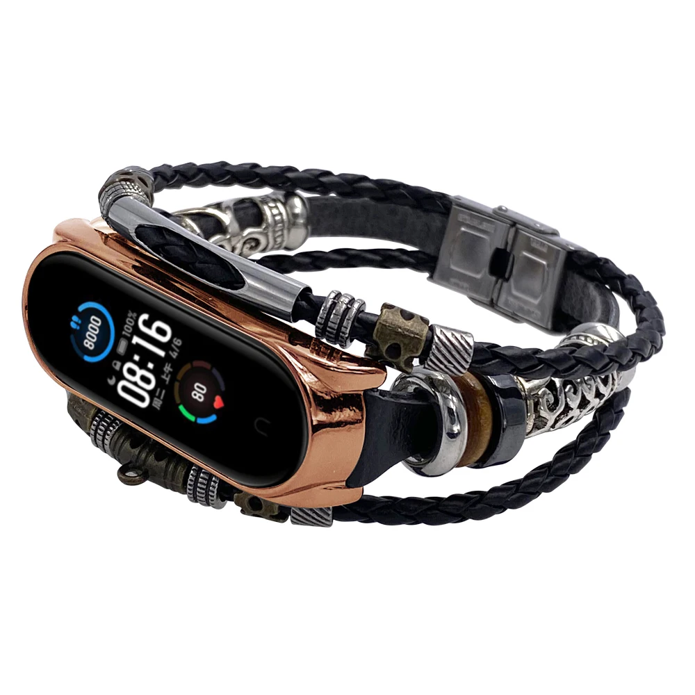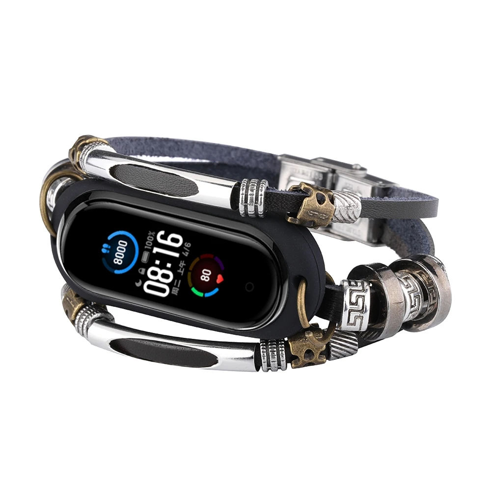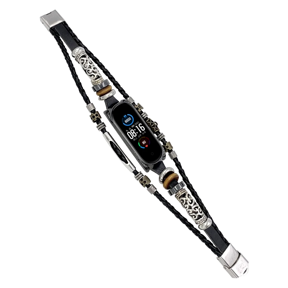 Ретро Mi Band 5 ремешок модный кожаный браслет с бисером для Xiaomi Mi Band 5 винтажный Плетеный ремешок для часов Xiaomi Miband 5 браслет