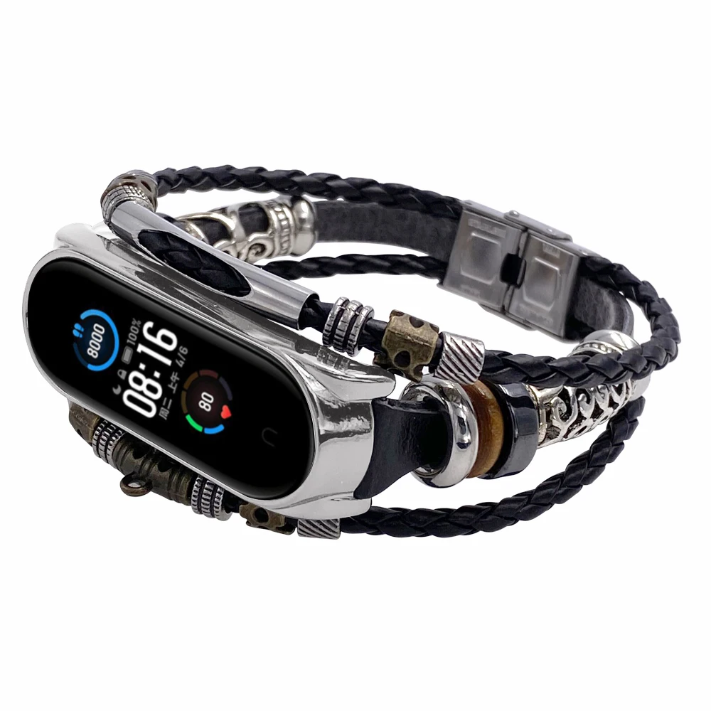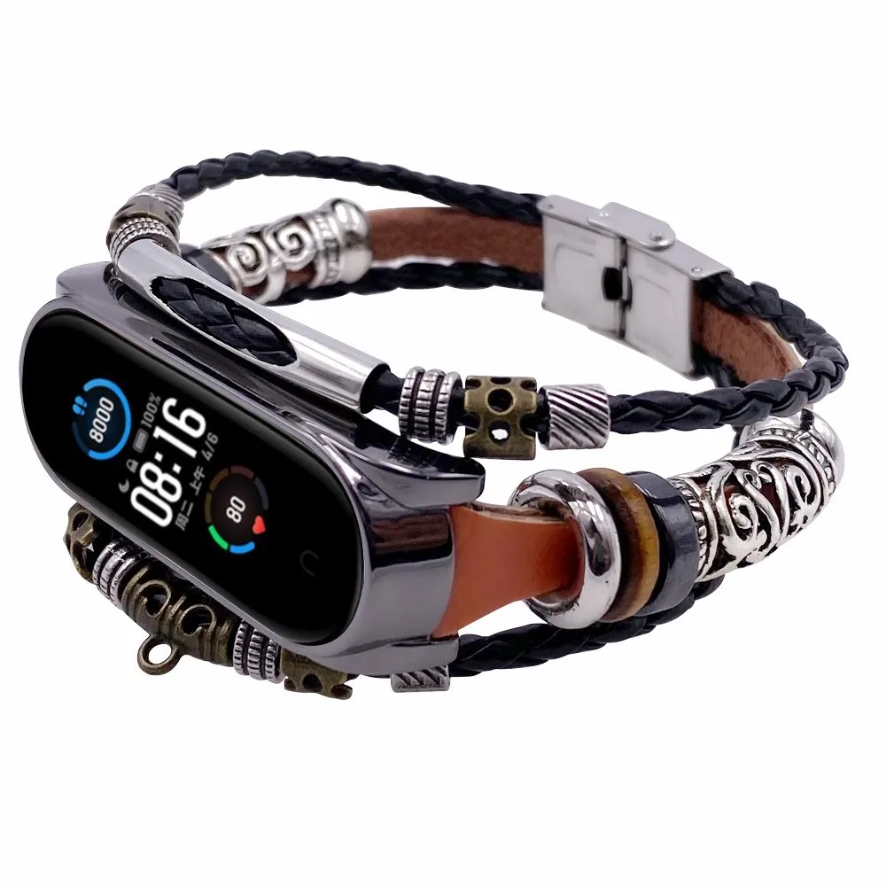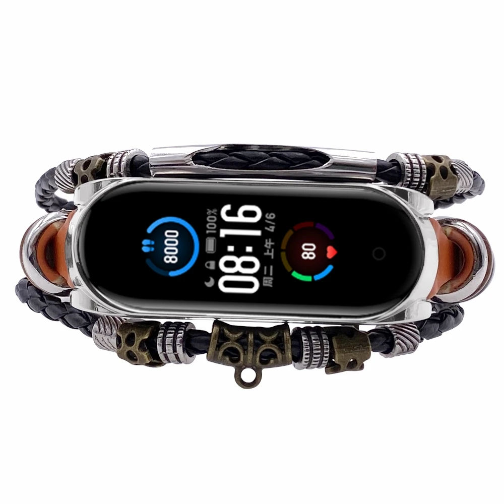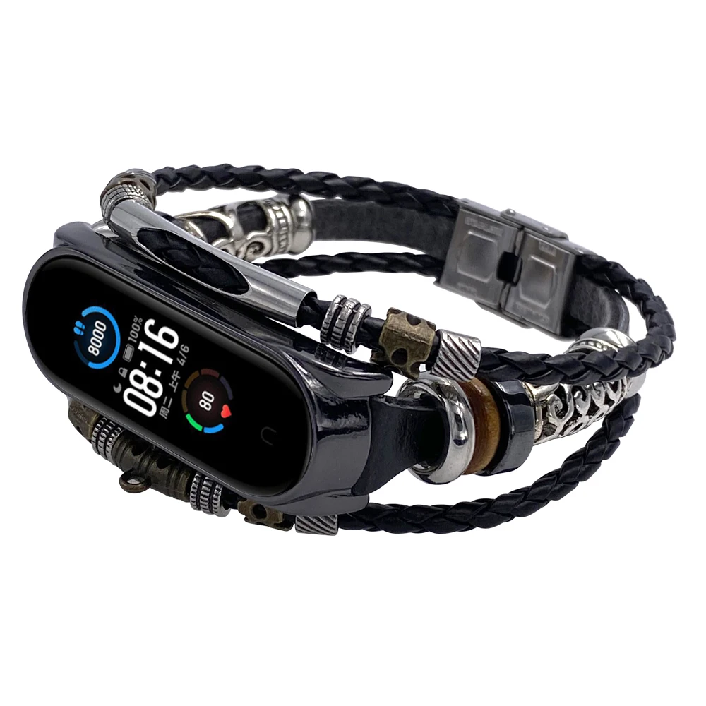 Ретро Mi Band 5 ремешок модный кожаный браслет с бисером для Xiaomi Mi Band 5 винтажный Плетеный ремешок для часов Xiaomi Miband 5 браслет