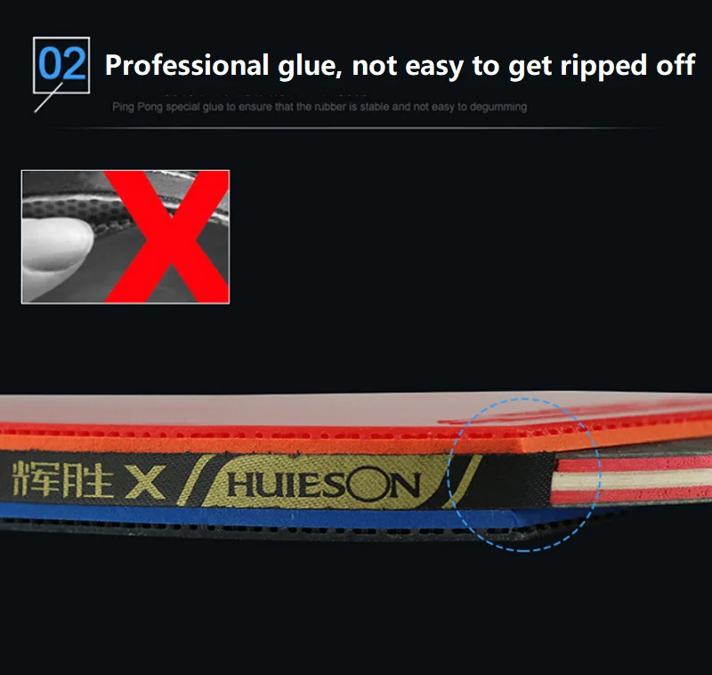 Резина:Двойное лицо прыщи-в тип жесткая резина + высокая энергия губка.