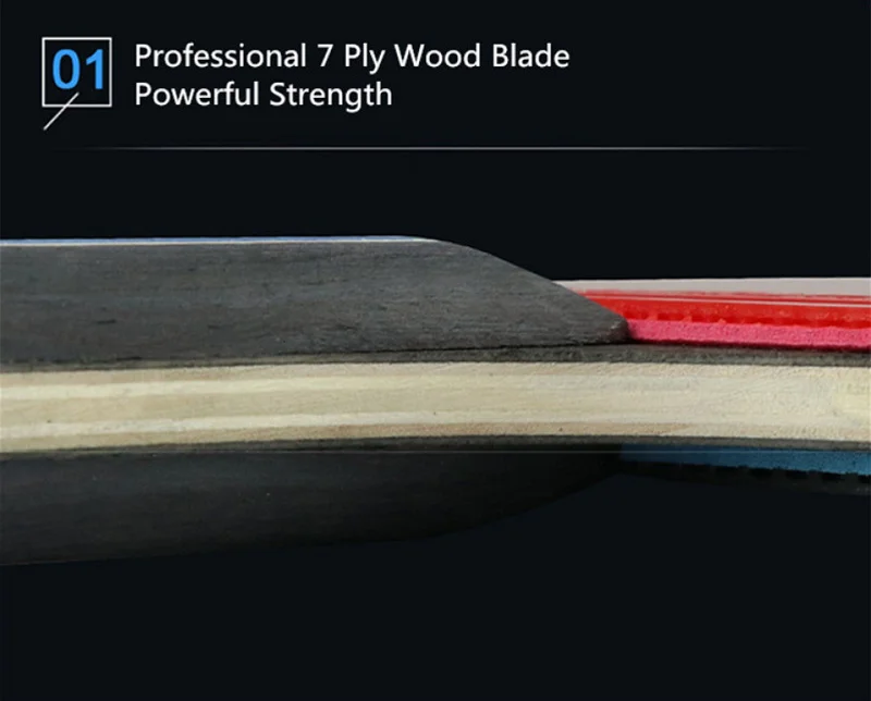 Лезвие выполнено из 7 слоев чистого дерева, немного крупнее обычного настольный теннис ракетки, выдает однотонные мощный гладить прочности.