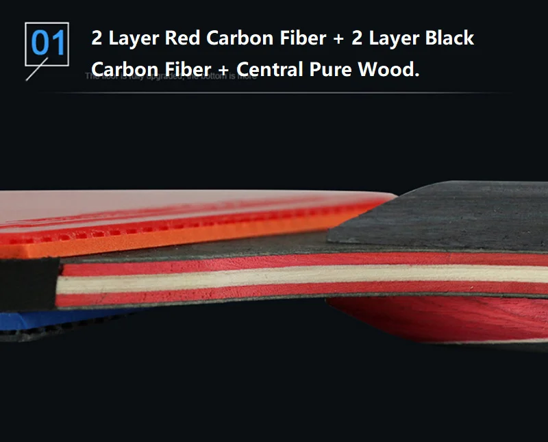 Лезвие:2 слоя Красного углеродного волокна + 2 слоя черного углеродного волокна + Центральная чистая древесина.