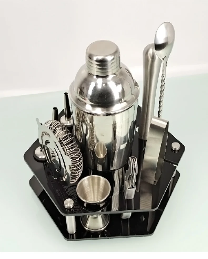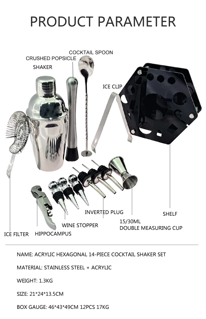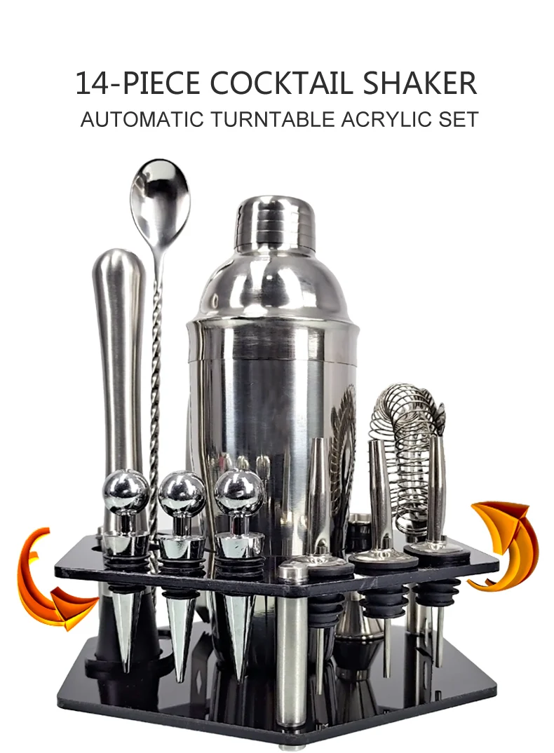 Это вращающийся роскошный барный стол, оснащенный 14 высококачественными инструментами, которые непроницаемы, устойчивы к цвету, прочные и долговечные. Самое главное, это решает проблему, что компоненты других бардинговых столов легко наклоняются, когда стол вращается. Если вы любитель коктейлей, пожалуйста, поверните стол, чтобы показать все инструменты для барменов своим друзьям, близким, родным и близким, прежде чем готовить коктейли или смешанные напитки для них, вы будете чувствовать себя прекрасно! Если вы профессиональный бармен, как здорово будет начать коктейльное шоу, повернув стол, чтобы привлечь внимание всех гостей! Если ваш друг является барменом, или ваш отец или близкие заинтересовались барменом, купите его в подарок. Я уверен, что они очень полюбят его!